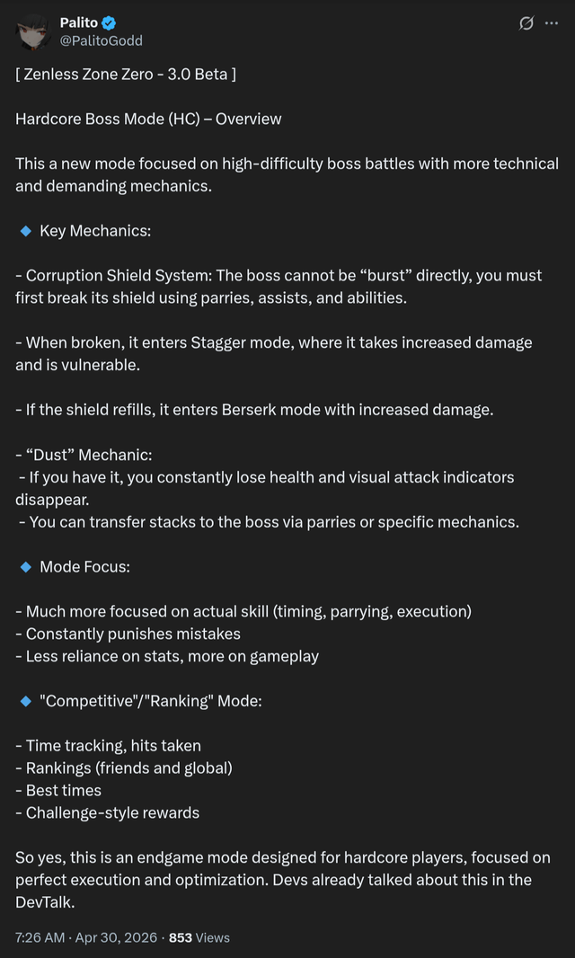 Previous: >>565338308 >NewsAgent Record | Normahttps://www.hoyolab.com/article/44852924Agent Record | Velinahttps://www.hoyolab.com/article/44852574Agent Record | Pyroishttps://www.hoyolab.com/article/44836786Version 2.8 Special Programhttps://youtu.be/UaqNm1F6-rI >Newest Trailer/Teaser/Character demohttps://youtu.be/ew9nVnCl8AY (EN)https://youtu.be/L5DEAV17cYY (JP)https://youtu.be/tN0ibny9Ans (EN)https://youtu.be/25vaOHfSDUY (JP)https://youtu.be/7FbKuJv0e1I (EN)https://youtu.be/rBgqwLdtX-I (JP) >Upcoming Events for 2.7https://zenless.hoyoverse.com/en-us/news/163253Chronicle of Simmering Flavors 03/25 - 05/05All-New Program 03/24 - 05/05Special Disaster Control Squad 04/03 - 04/20Old Friends, New Commissions! 04/15 - 05/05"En-Nah" Into Your Lap 04/15 - 05/05Adventure Footage Freeze Frame 04/22 - 05/05Charge! Battle Against the Negative Reviews 04/29 - 05/13Advanced Bounty: Area Patrol 04/10 - 04/15Data Bounty: Combat Simulation 04/29 - 05/04 >Redeemable codes (claimable in-game or online)https://zenless.hoyoverse.com/redemptionZENLESSGIFTZZZCUTENESSZZZ27CHAMPIONZZZ28HERO >Resources and useful linkshttps://rentry.org/zzzlinkshttps://rentry.org/ZZZ-Friendshttps://rentry.org/ZZZ-Guilds >/zzz/ OP pastebin (use this if making new thread):https://pastebin.com/PzbMf13P