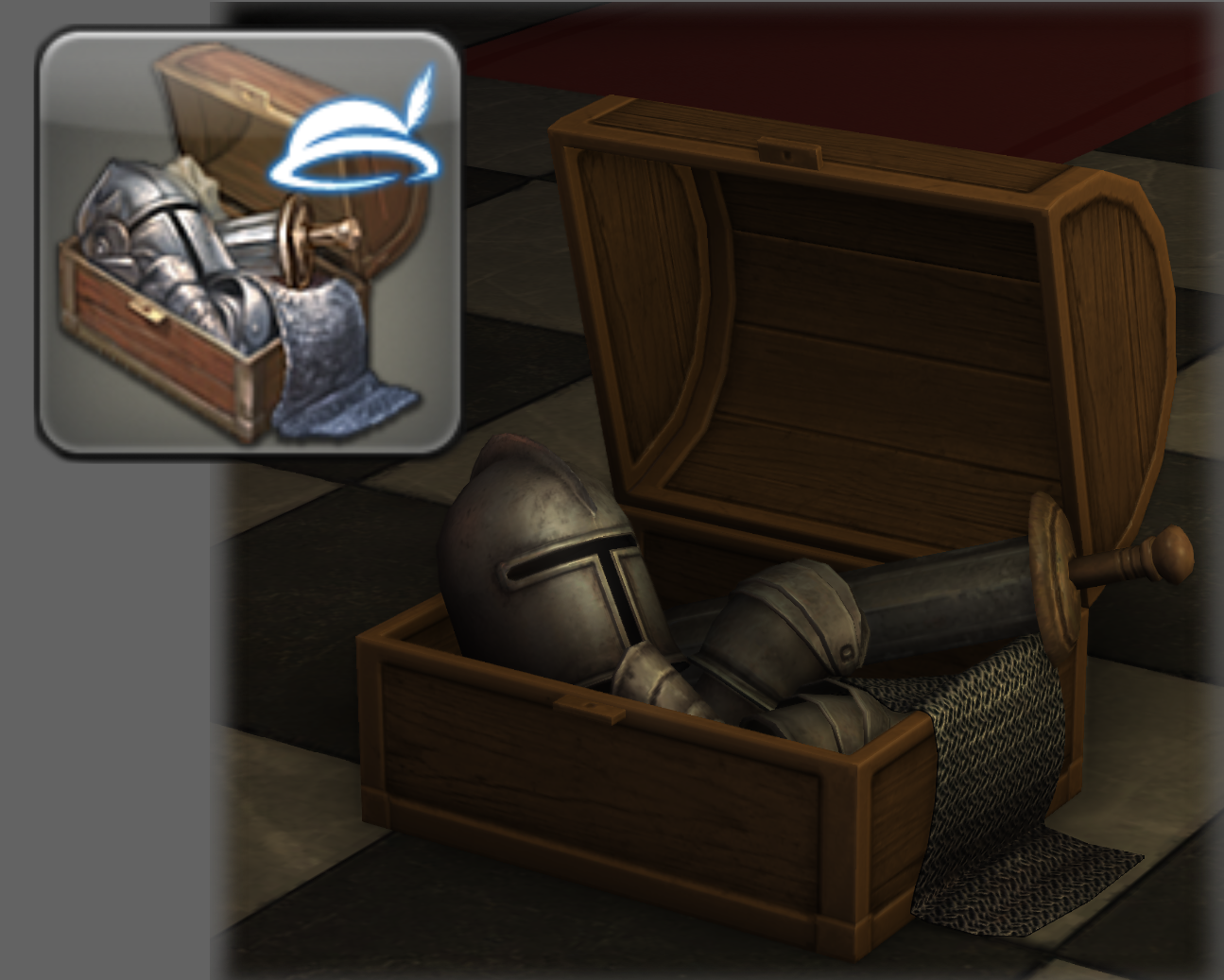 Ive used this item in a few of my builds but somehow never ever noticed it that THE gear coffer icon.I play with a small UI please understand