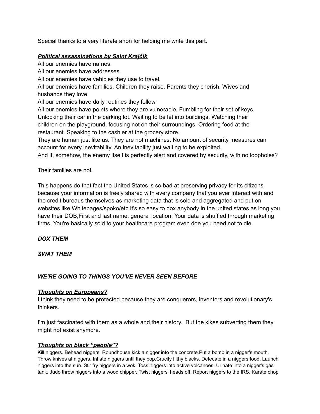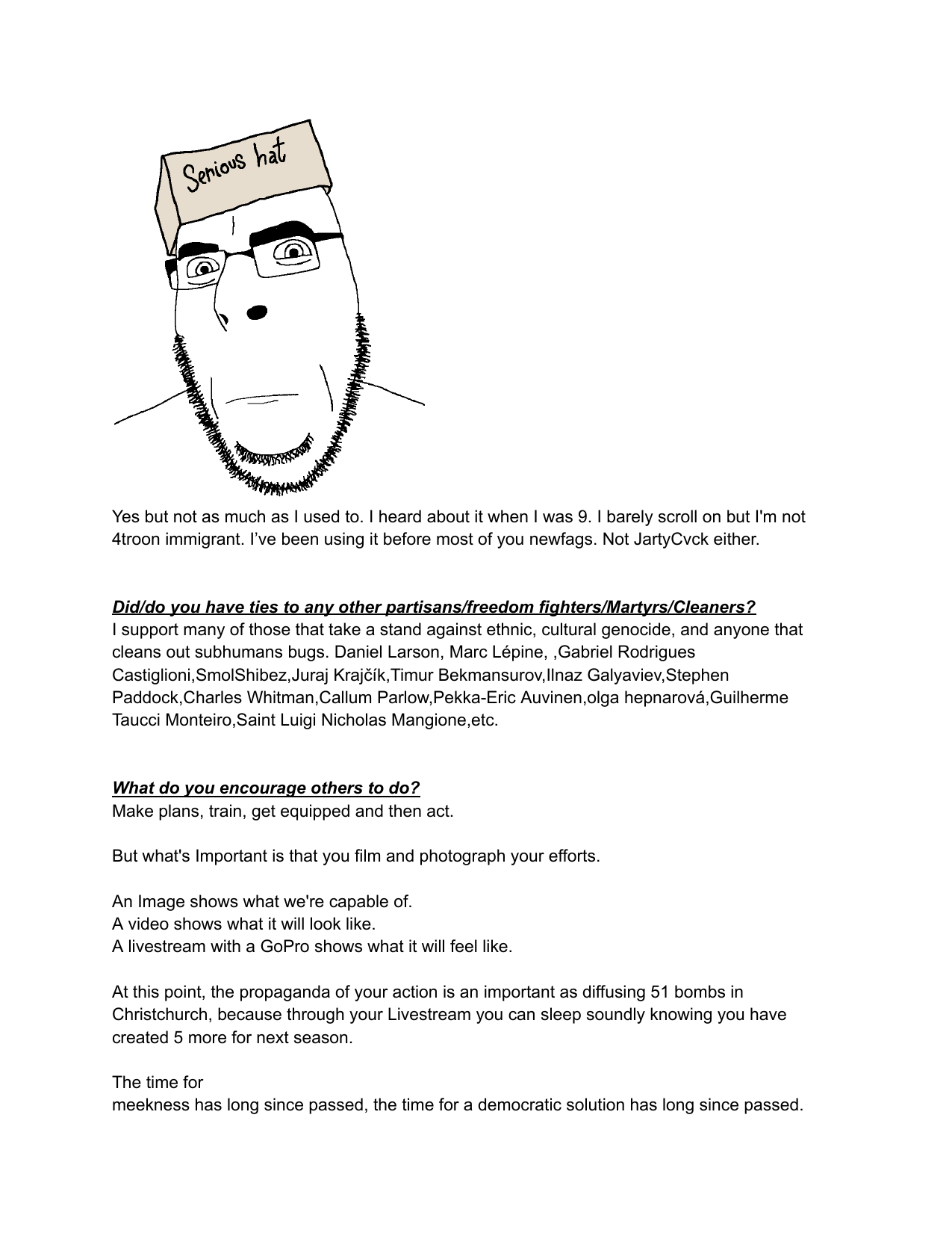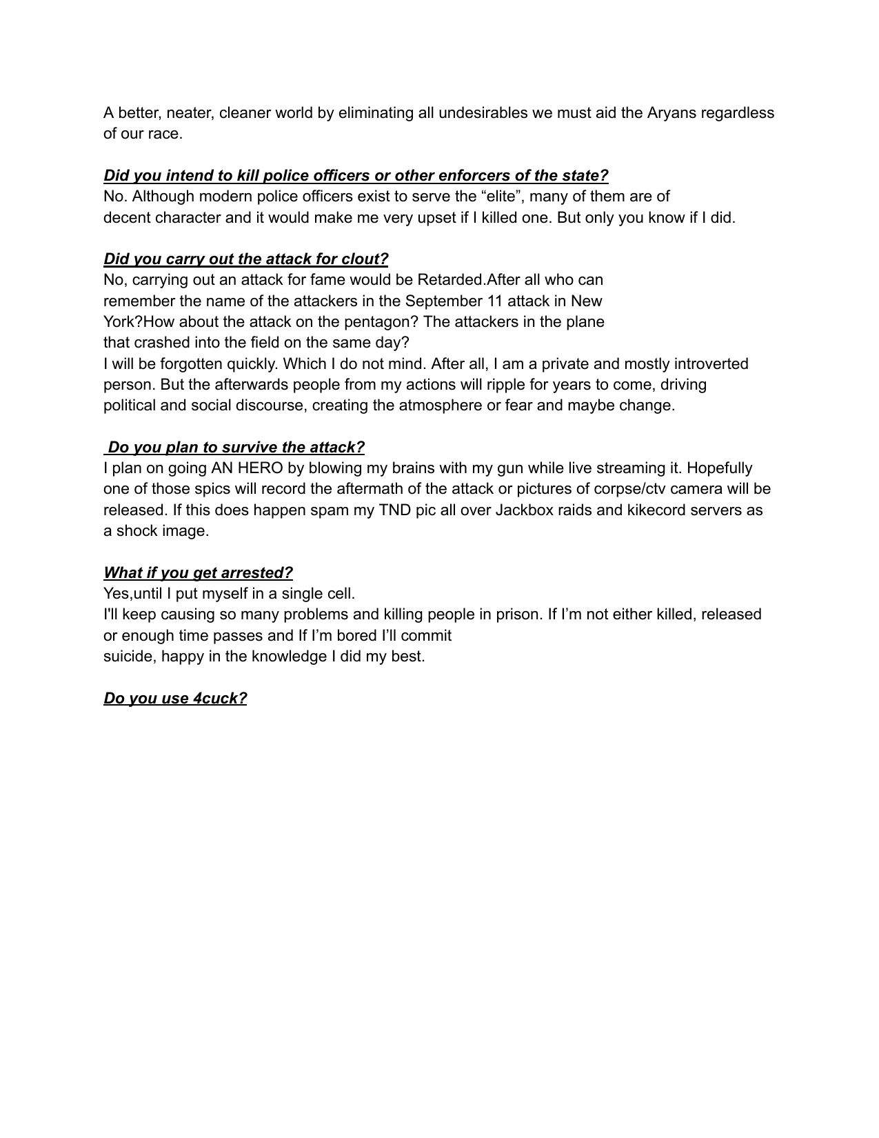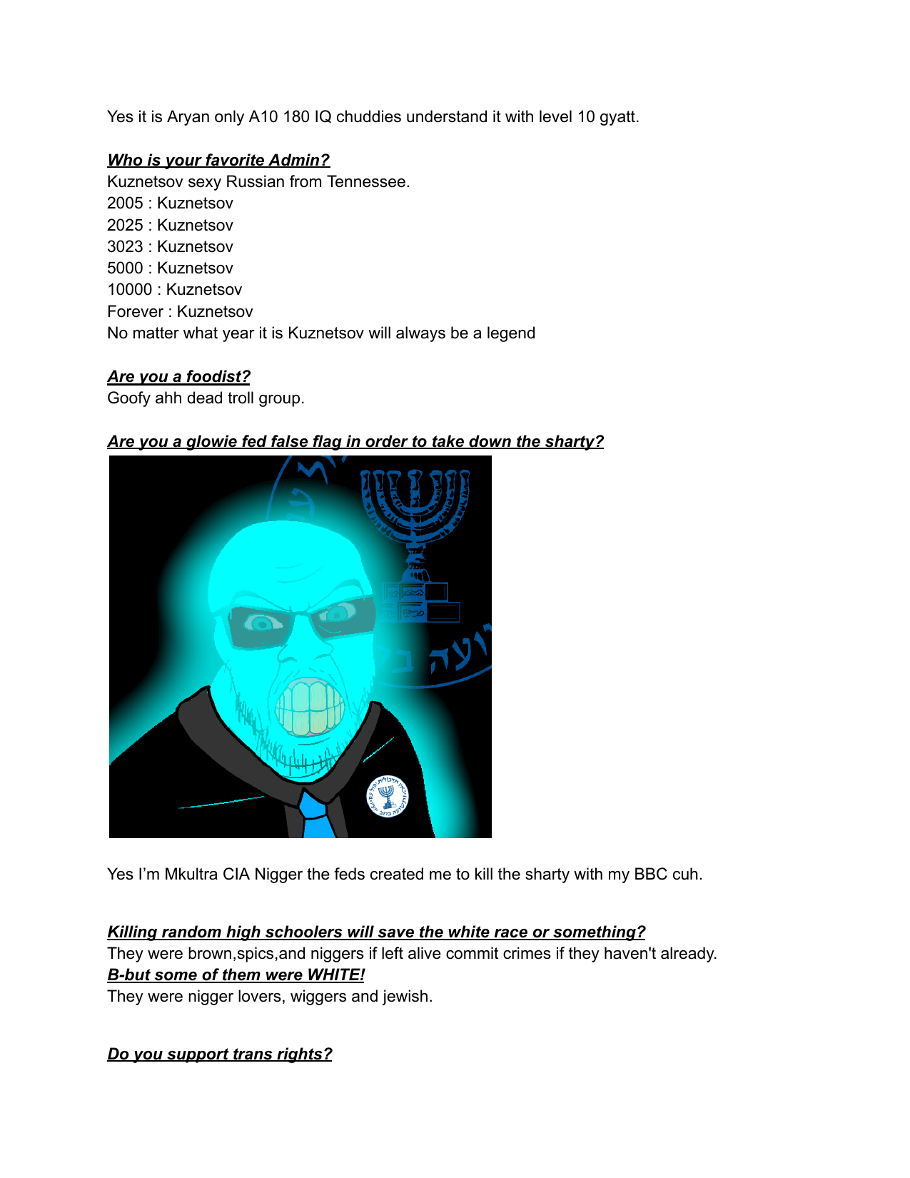 Hello /vip/Kiwi Farms got an email from Australian eSafety Commissioner demanding KF to delete some school shooter's manifesto. Null obviously refused.I feel like it would be appropriate to post said manifesto here, on the slowest board of the site, in hopes of 4chan also getting angry emails from goddamn Aussies.