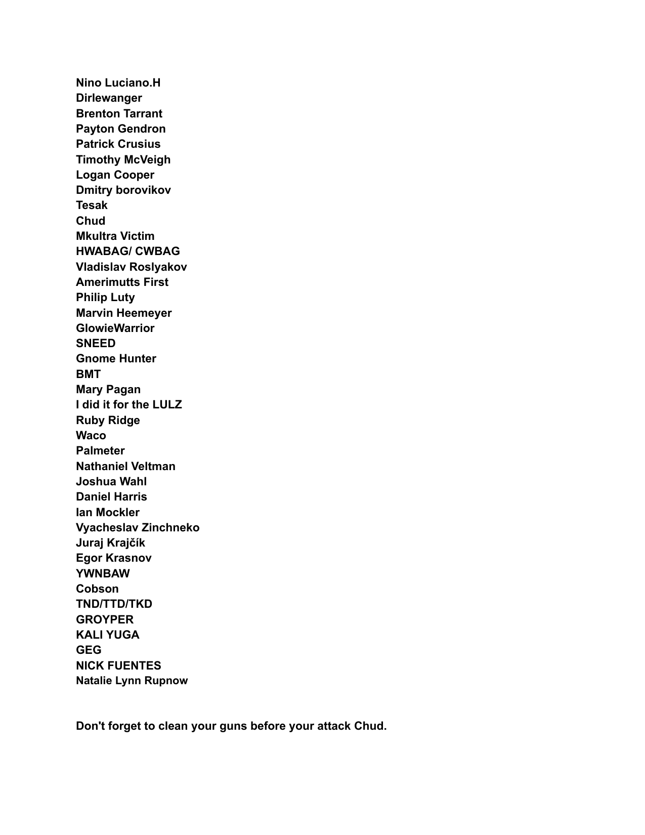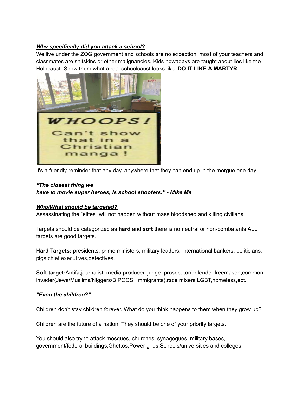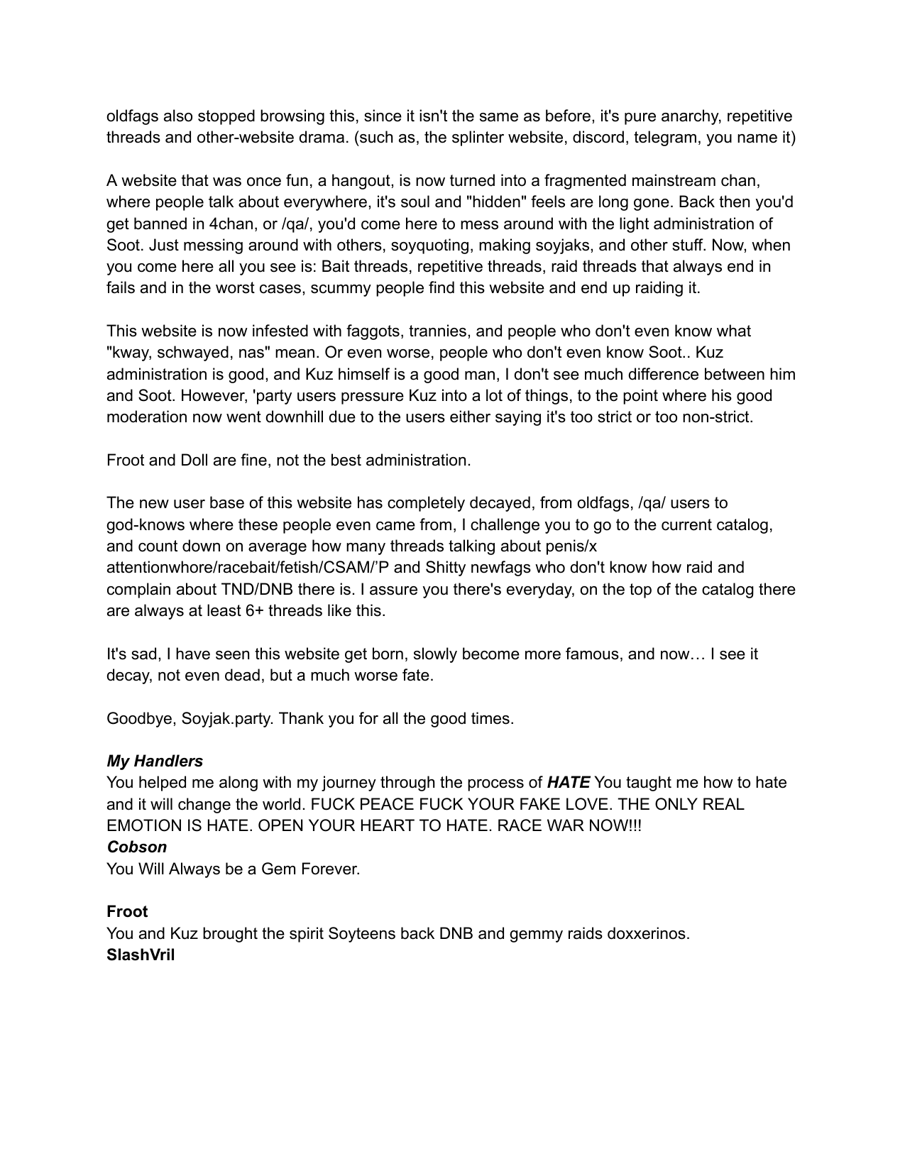 Hello /vip/Kiwi Farms got an email from Australian eSafety Commissioner demanding KF to delete some school shooter's manifesto. Null obviously refused.I feel like it would be appropriate to post said manifesto here, on the slowest board of the site, in hopes of 4chan also getting angry emails from goddamn Aussies.