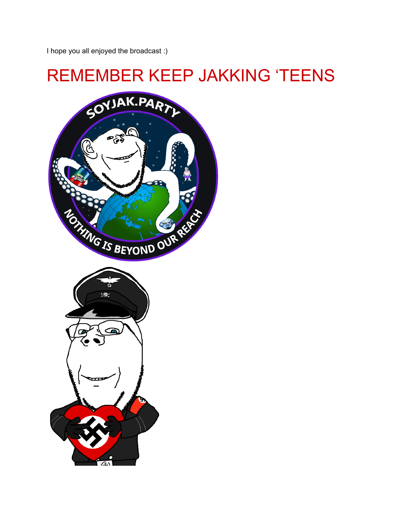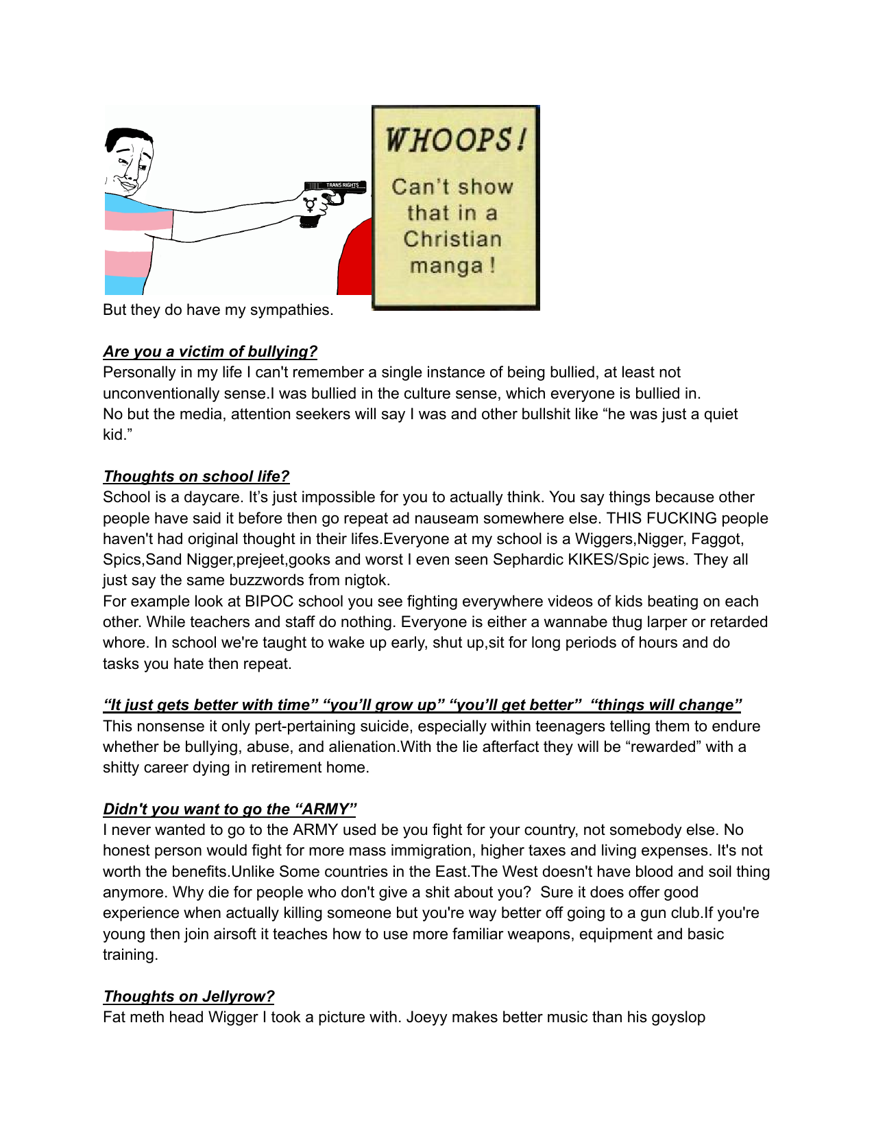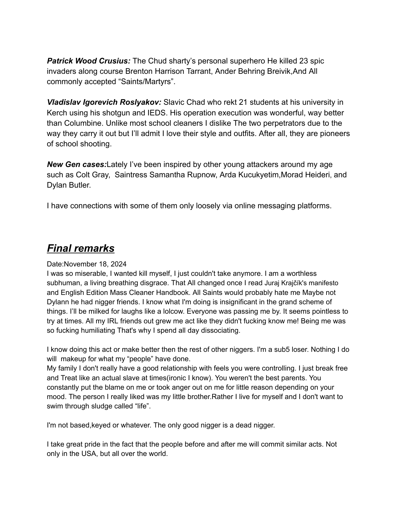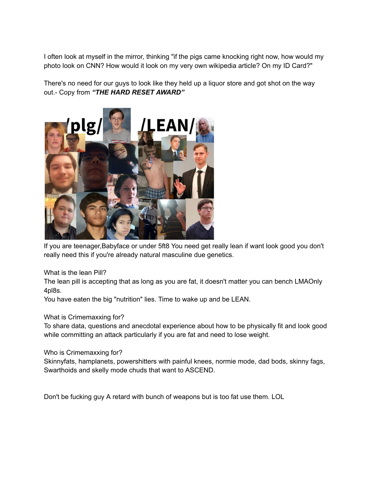 Hello /vip/Kiwi Farms got an email from Australian eSafety Commissioner demanding KF to delete some school shooter's manifesto. Null obviously refused.I feel like it would be appropriate to post said manifesto here, on the slowest board of the site, in hopes of 4chan also getting angry emails from goddamn Aussies.