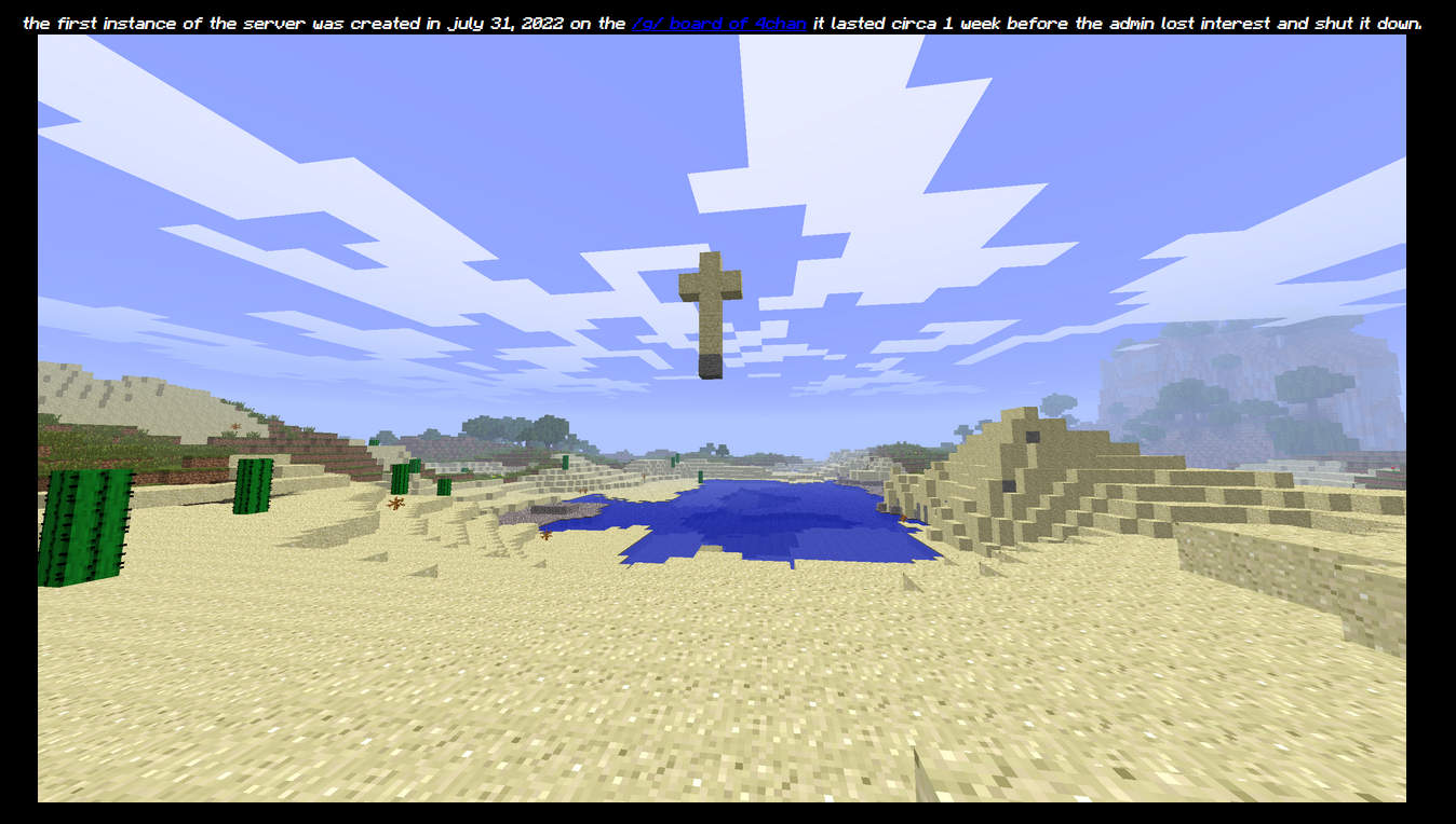 Bored of playing modern minecraft with trannies, missed when you were playing in 2011?Try out b1.7.3 which has an even more tranny filled community!Q&A:>This isn't FOSSThe server source will be released one day, you can play through truecraft/betamine for a (bad) open source client>I just want to play!Use PolyMC/Prism Launcher to download b1.7.3 and voila.>Modern foss client?https://git.sr.ht/~sircmpwn/betamine (Will never be finished lmao)>How long has the server been up2 yearsLinks:>Server IPComment too long. Click here to view the full text.