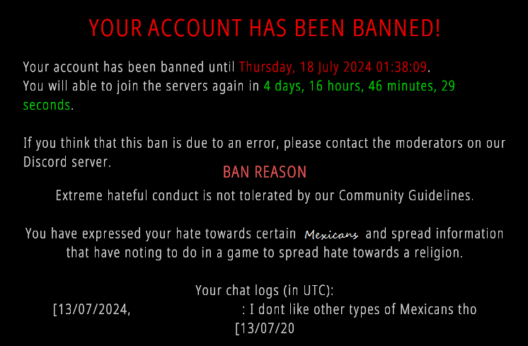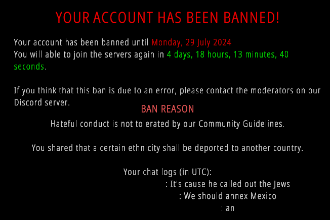 >>1706607>>1706610>>1706611>>1706612>>1706616Based>no kill feed>but there is a feed of "banned for saying mean words"Janny faggotry like this killed Battlebit for me, I stopped playing after like the first weekI don't even really talk much when gaming, but IMO if text chat and VC isn't full of fucked up insults and micspam then you might as well be playing with fucking bots