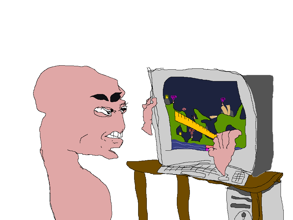Board Game edition >What is Worms? Worms is a classic turn-based strategy game with astounding gameplay customization. Armageddon despite being released in 1999 still is getting support with cool mods, and official updates. This is a thread for all anons to gather round to talk and play some Worms, mostly Armageddon really. >Collected Custom maps, sounds, fanfares, flags and graves from past threads https://drive.google.com/drive/folders/1az9kWs21dSSbqGfnBTQhkLZrBuu23otH >Hostpack Starter set (contains maps, schemes, and custom terrains) https://drive.google.com/drive/folders/1NfBXV_eI4TJUujEyLbD1Rv_nckmITmx_ Check what lobbies are currently open with https://snoop.wormnet.net/snooper/, or if you'd like to be notified when when a /v/ lobby opens up, get https://worms2d.info/Great_Snooper Lobbies and threads will be often be notified here and will usually be present at Channel: #anythinggoes Room: /v/ Pass: rage Previous thread: >>1393796