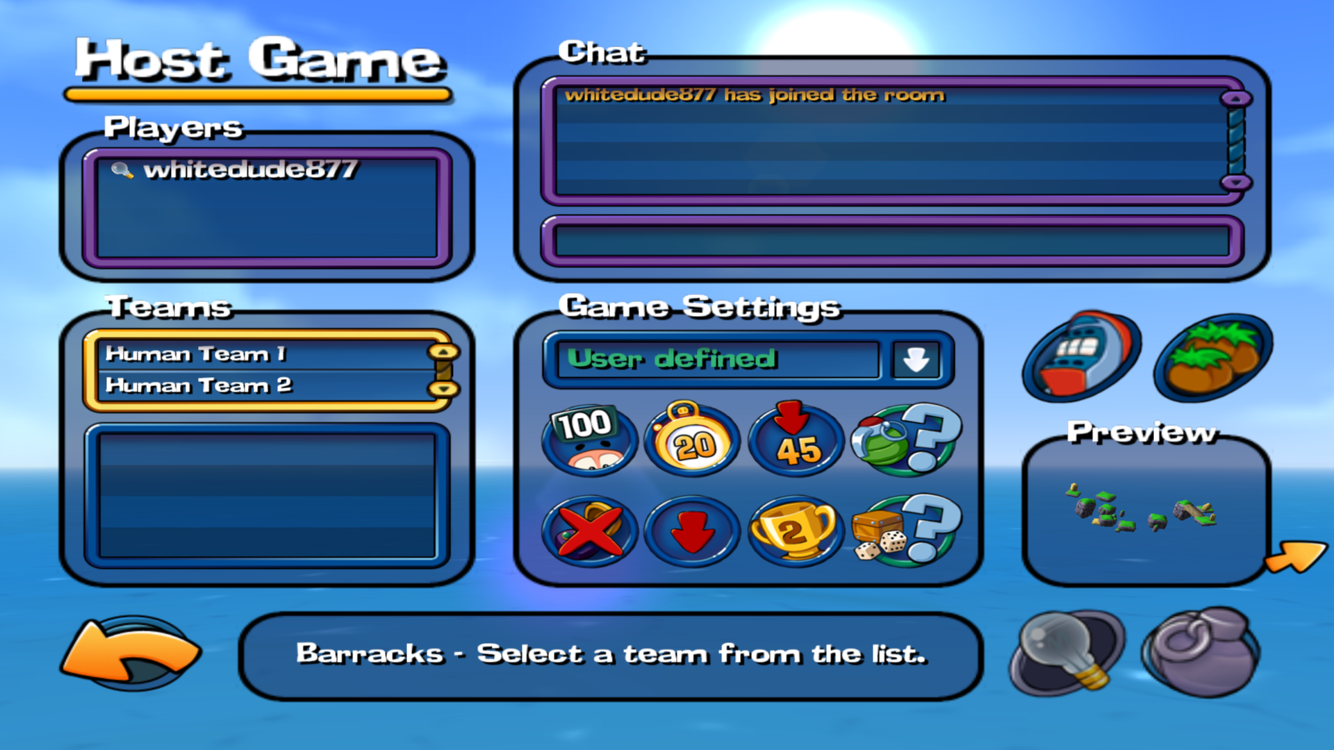 >>1978298Actually Radmin vpn is way neater. https://www.moddb.com/news/how-to-play-worms-3d-using-radmin-vpnJust follow the instructions in the link above. Gonna leave the game up for an hour while I do stuff. Maybe a quick game can be had.