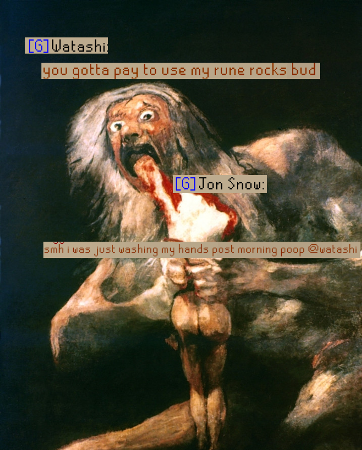 idk why im here i hate runescape, i quit yesterday because i dont have irl money for memb and my bond expires in 2 days fml, got like 2 mil gp in bank, i dont think im smart enough to get huge amounts of money since i usually splurge it all trying to maintain a bond lol