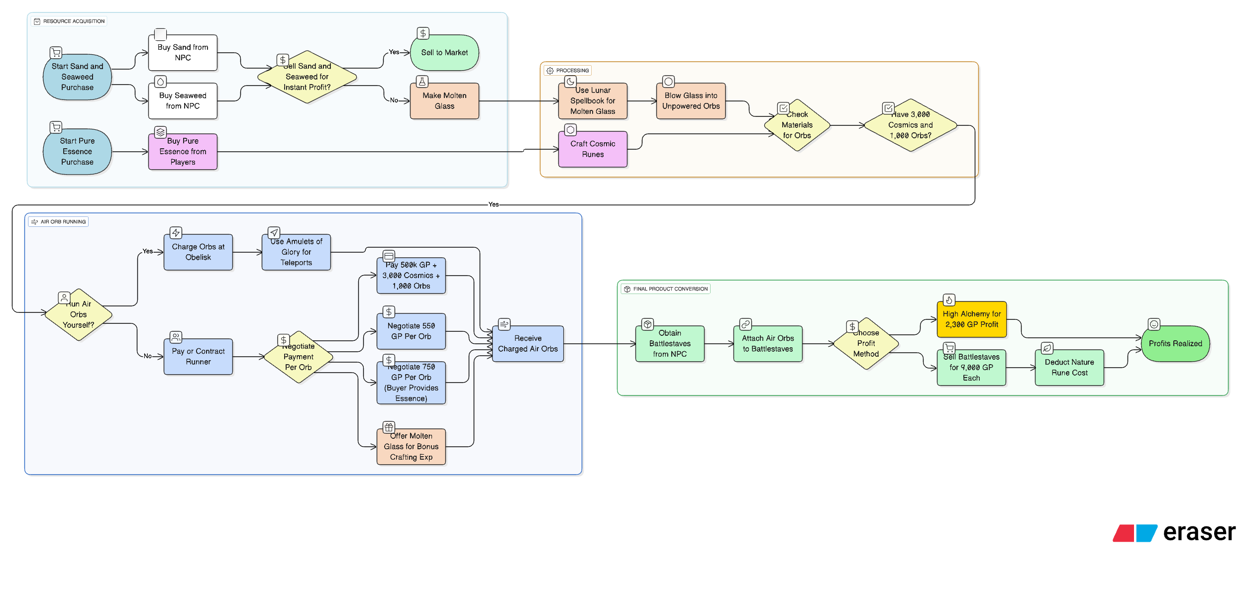 >as far as orbs go, my endgame is that most people have 1k+ air orbs banked and ready to trade. i only deal up front so i can sell you a starter kit (3k cosmics + 1k unpowered or glass) for 1.5m cash on a contract for 600k + materials for 1k air orbs, fulfilled within say a month flexible. or cosmics for 300 ea and glass for 500 ea. trading up front means no debt or funny math at the end. quasar ruined the collateral option but in exchange you get 600 ea + glass as a free option. so thanks to him?