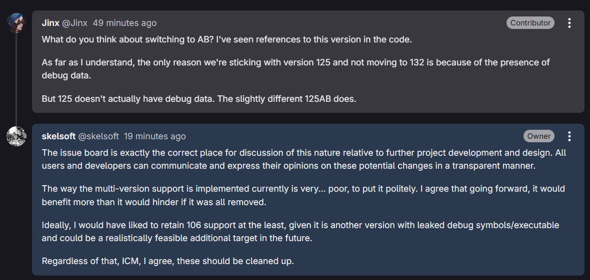 >>2033449>There are no people working on this to make it stable, most of the changes these last three weeks are fixing game logicsay that again but very slowly.>>2033541bro is watching the repo instead of contributing...>>2033550>Are these the same people or different teams? Or is this the team it leaked from?Different people, different project. also not open source and has never leaked.