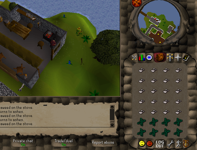 >>2182032Wow, I like manually clicking to cook each fish! That's probably why you have a botting problem. Btw, Vscape has 2007, while you will never have 2007. L M F A O. But keep coping I'm having a genuine laugh at you. 2004scape is so ass.