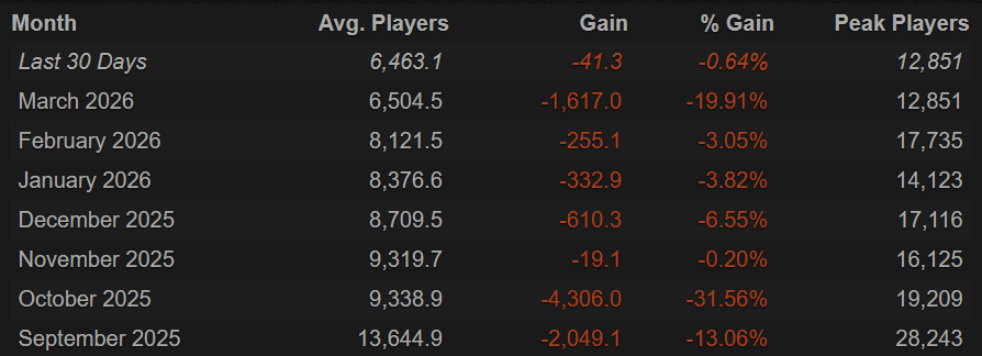 >>2059017A new raid just dropped and not a single player came back for it.We're sitting at 16,052 right now, that's -500 players compared to last week's peak lol.