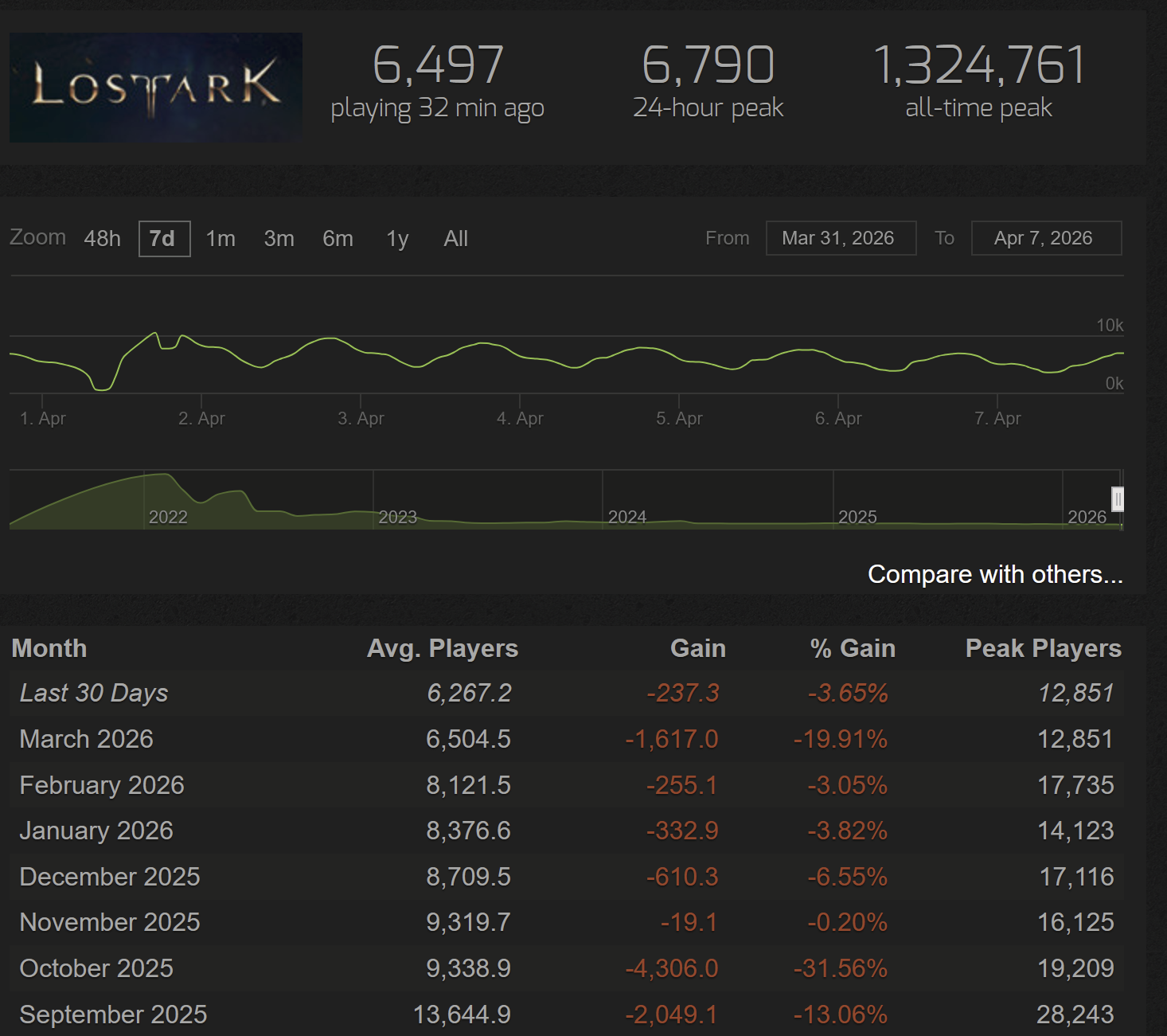 I came back a week later just to laugh at the people still playing this slop. -19% in March as they annoced EOS in all but name.