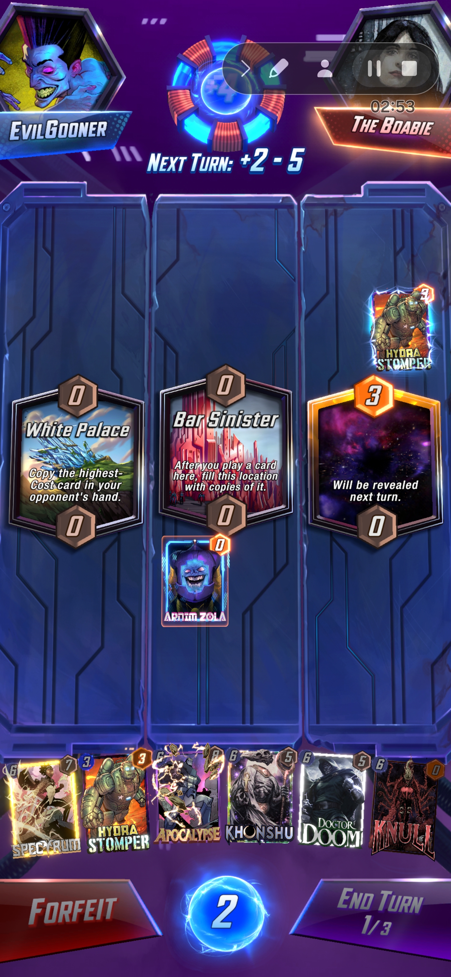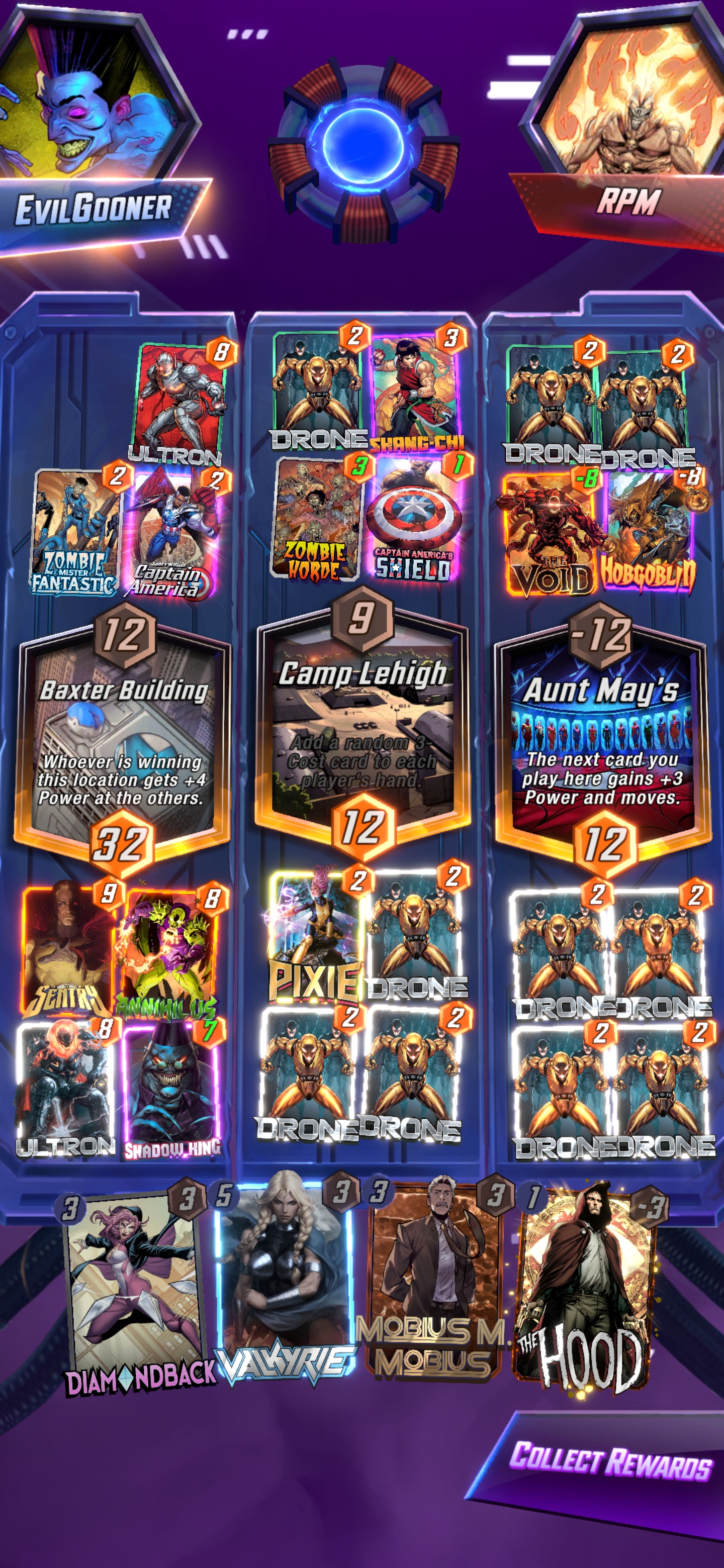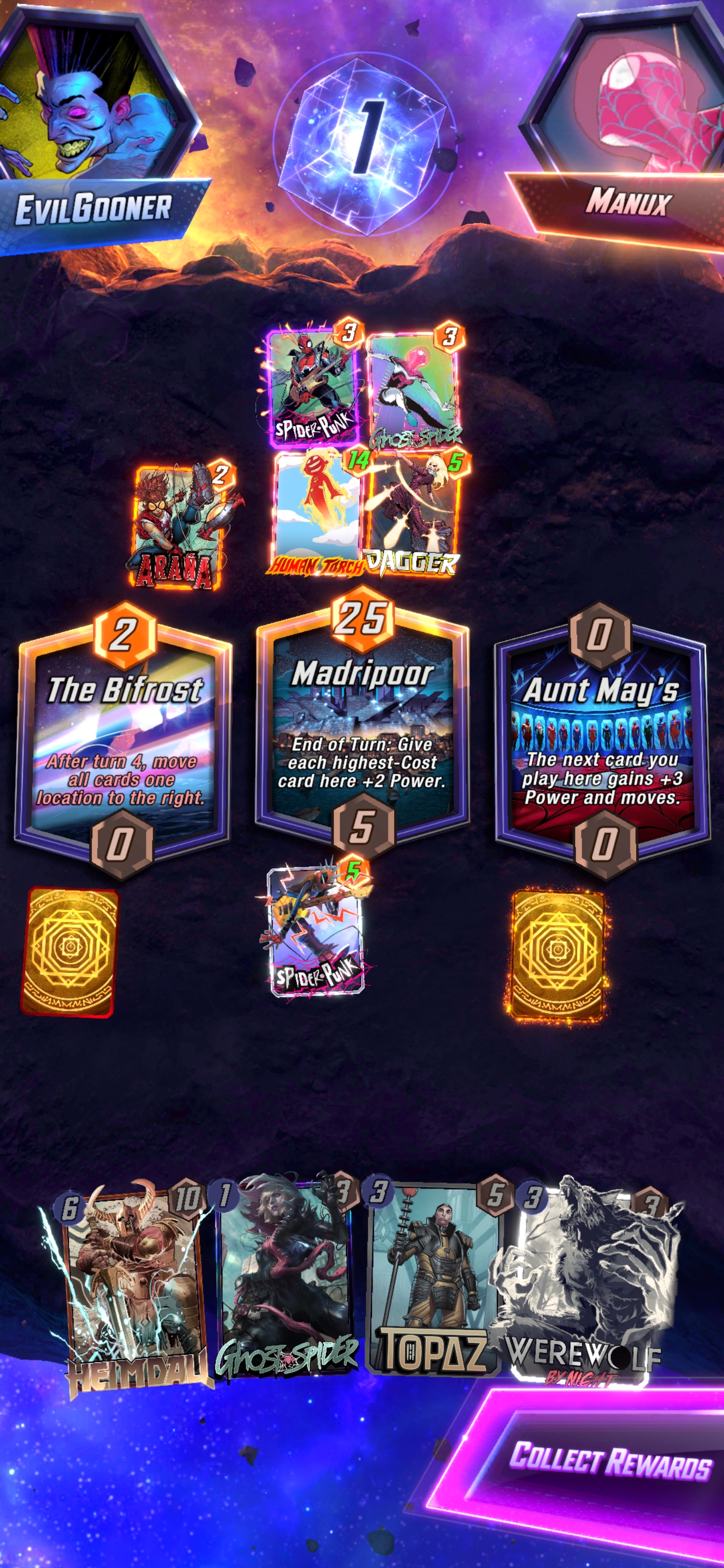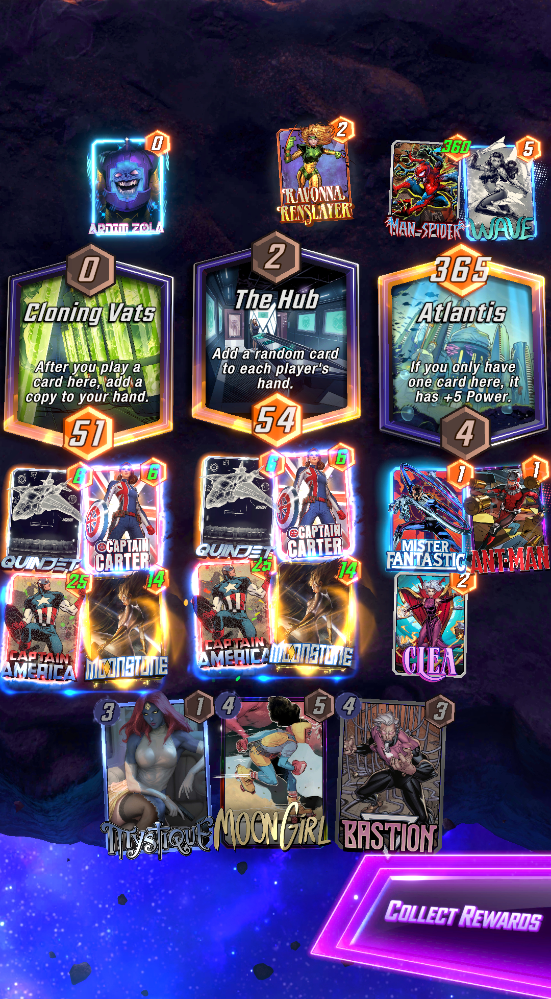 >wong/mystique/ironheart/odin goes off>none of it gets fast forwarded>opponent plays juggernaut without priority and moves my odin, then plays doctor ocotopus to pull my hazmat>another round of wong nonsenseLongest turn 6 ever holy shit lol