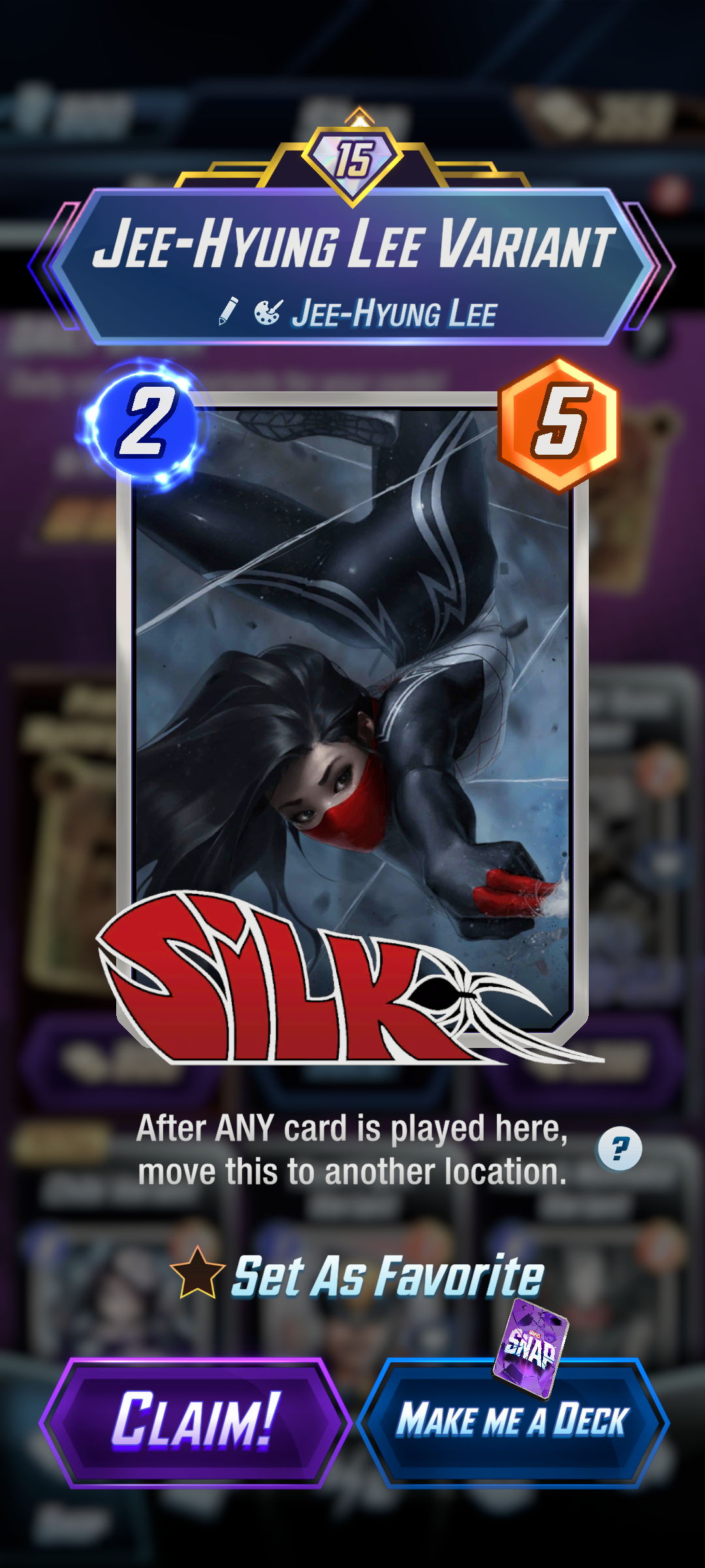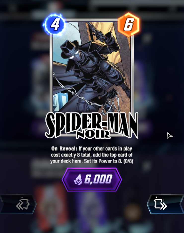 >>2052559Madame Web has always been fucked. She causes so many game crashes and just interacts really badly with other cards that can move or facilitate moving. I get that choosing what method of movement would probably be tricky to figure out since they want this game to be playable on mobile but I wish they'd do something to fix her.