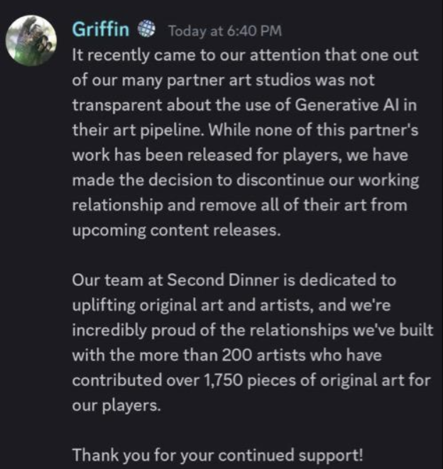 >>2056833They've put out official statements before against AI and said they don't allow it in the game.
