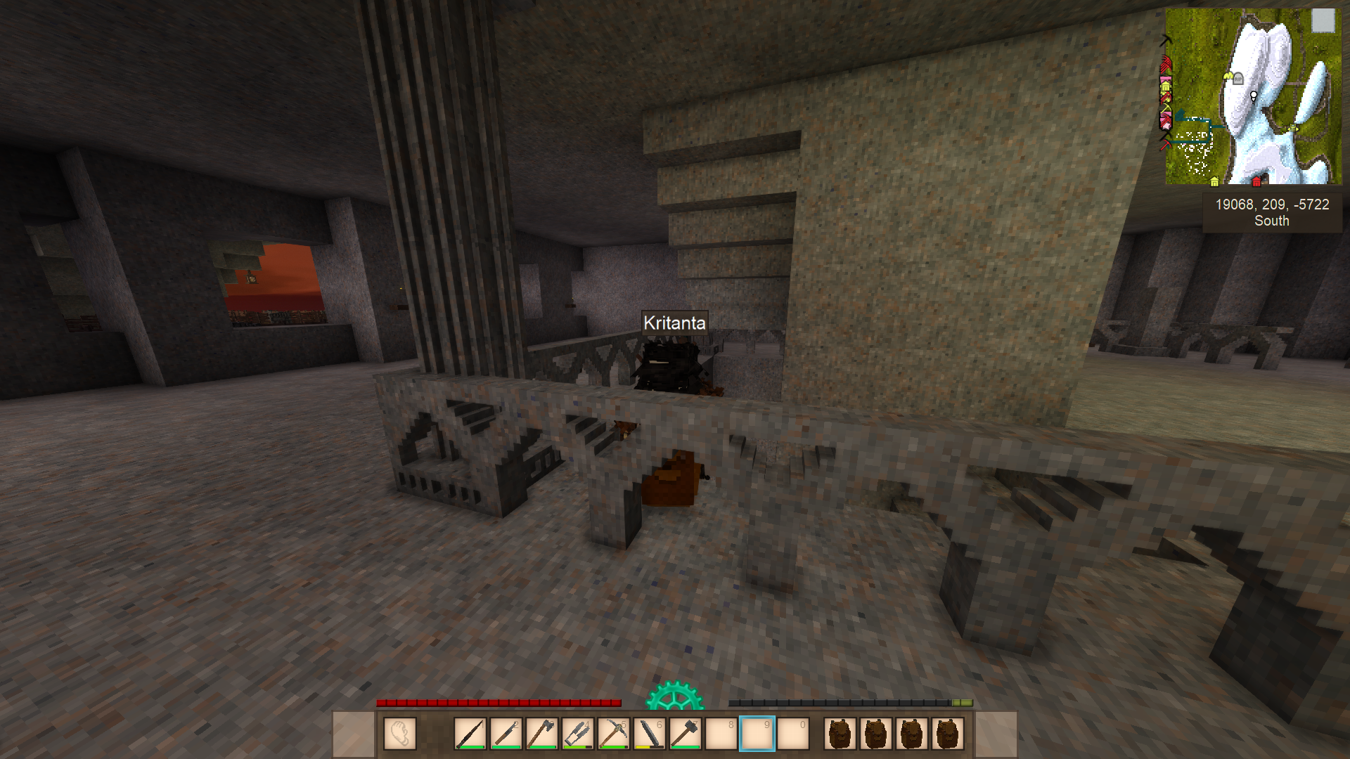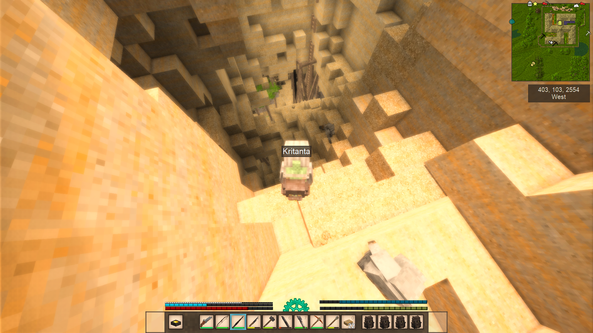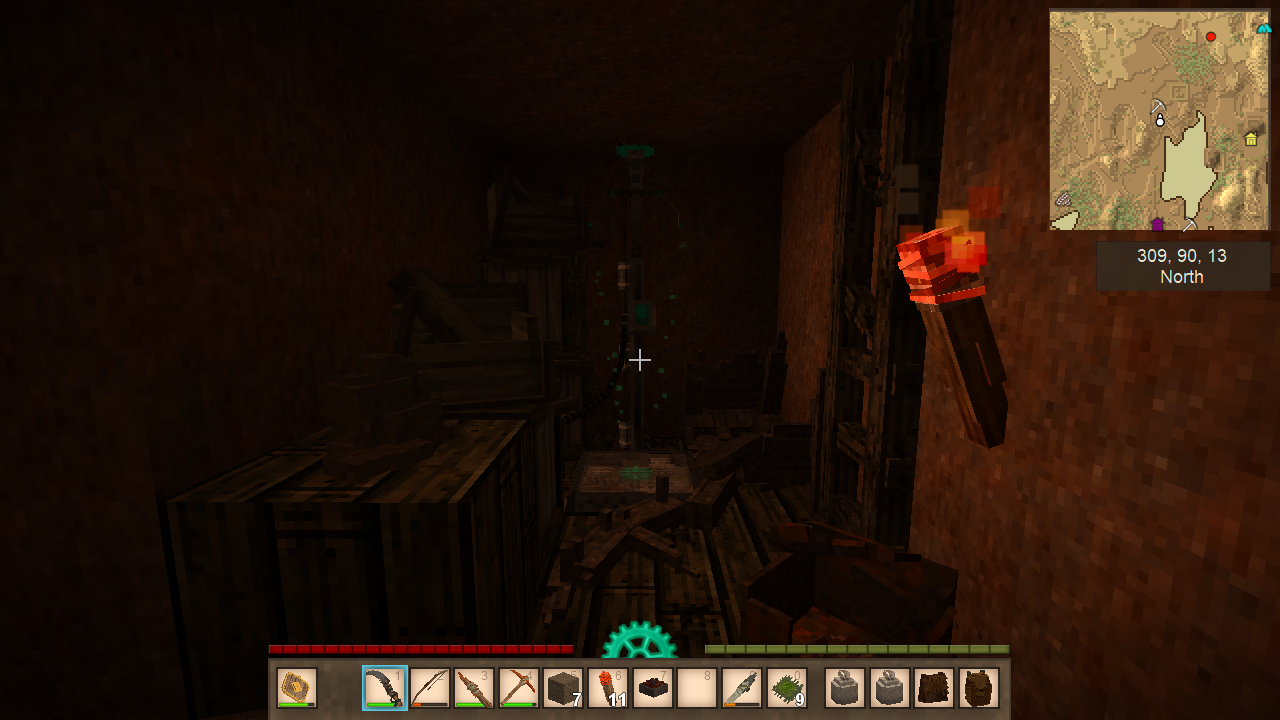 >>2080131>meet Dave>found the iron ore (highly unstable area)>made few iron tools (pain in the ass)>raided a cave, found like 8 pieces of saltpeter, ruins and meet a bell, ran away>raided an another cave, found a teleporter and killed a sawblade locust, further exploration needed, the hole is pretty damn deepSaid teleporter moves me by 6 thousand blocks, damn.