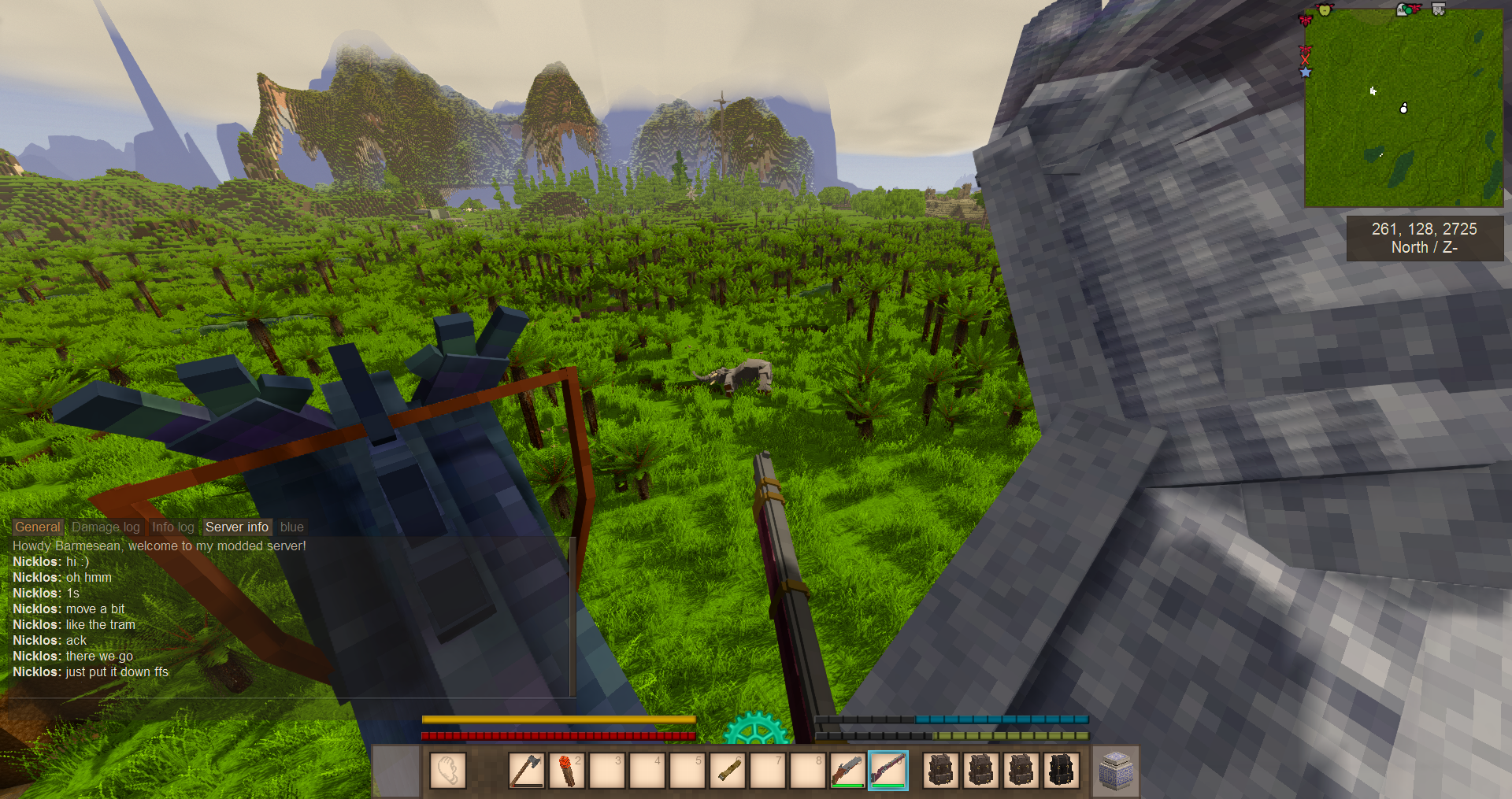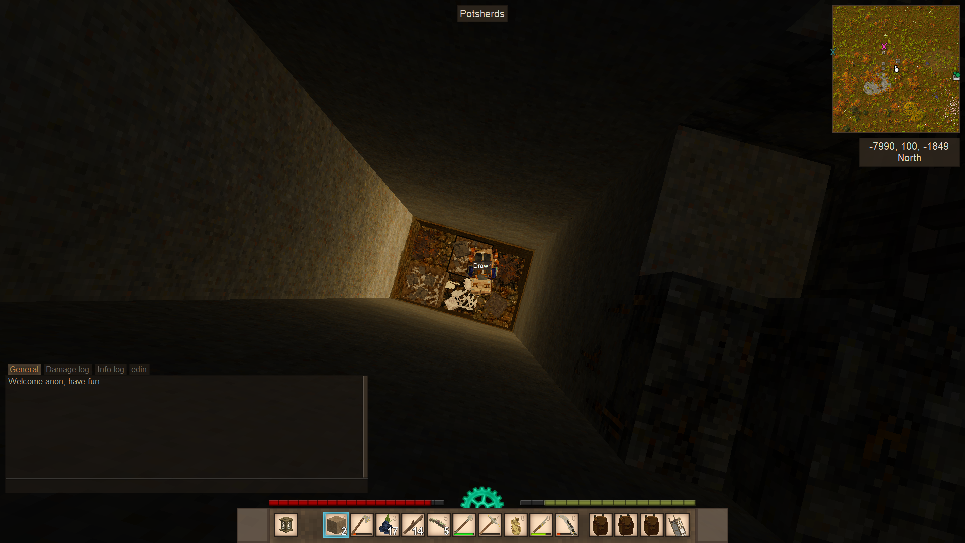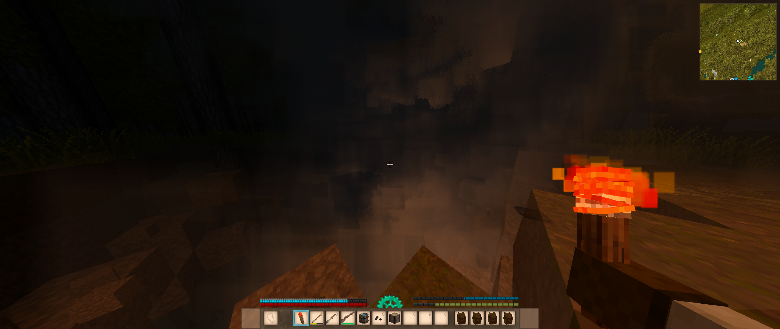 >>2080131>meet Dave>found the iron ore (highly unstable area)>made few iron tools (pain in the ass)>raided a cave, found like 8 pieces of saltpeter, ruins and meet a bell, ran away>raided an another cave, found a teleporter and killed a sawblade locust, further exploration needed, the hole is pretty damn deepSaid teleporter moves me by 6 thousand blocks, damn.