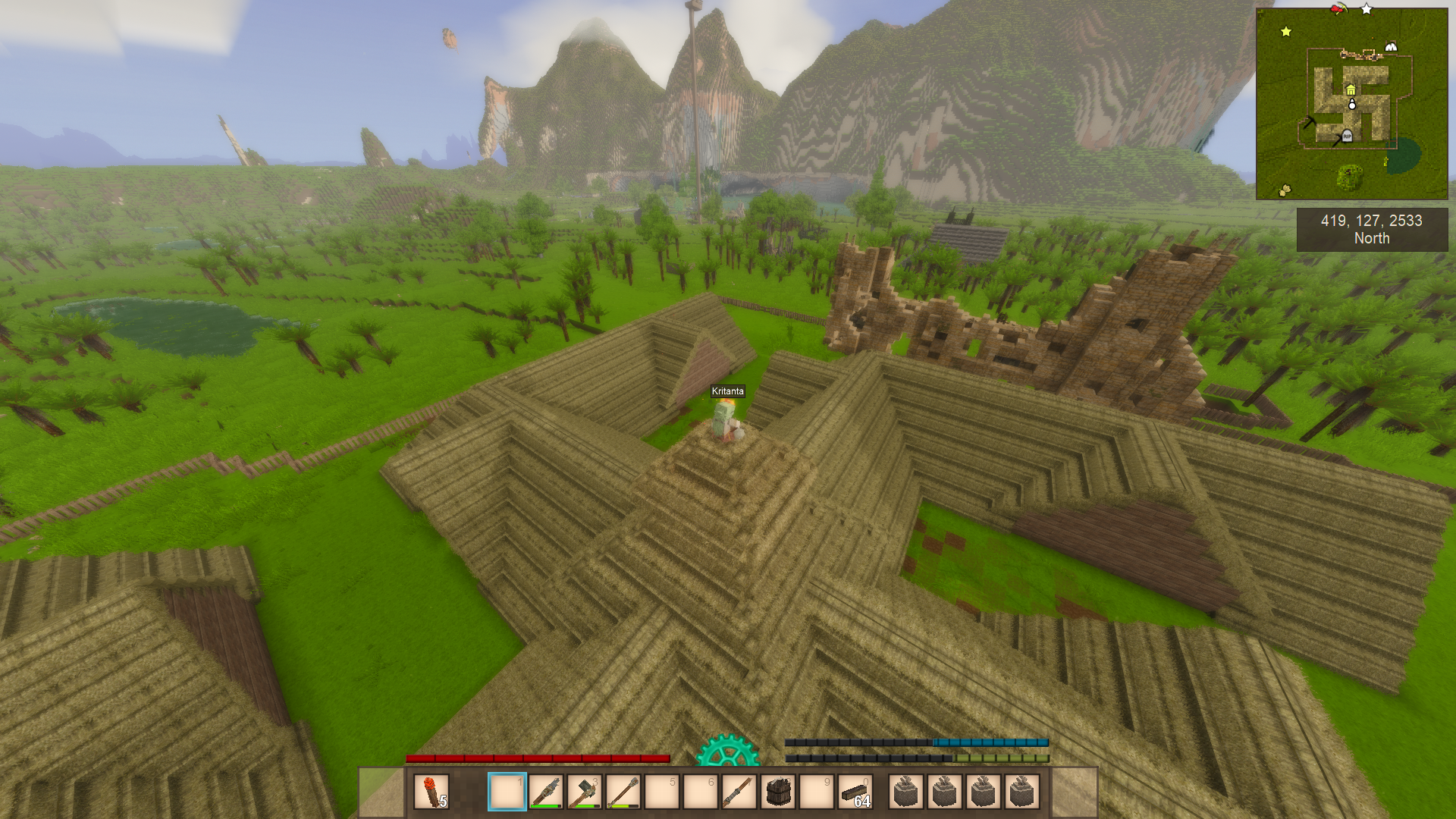 >>2056733One of the most annoying problems with vanilla worldgen is terrain can rarely ever just be FLAT. There always has to be weird schizo noise mounds everywhere. Found a nice valley? Have fun flattening out hundreds of whale-sized "hills" so you actually have level terrain to work with.