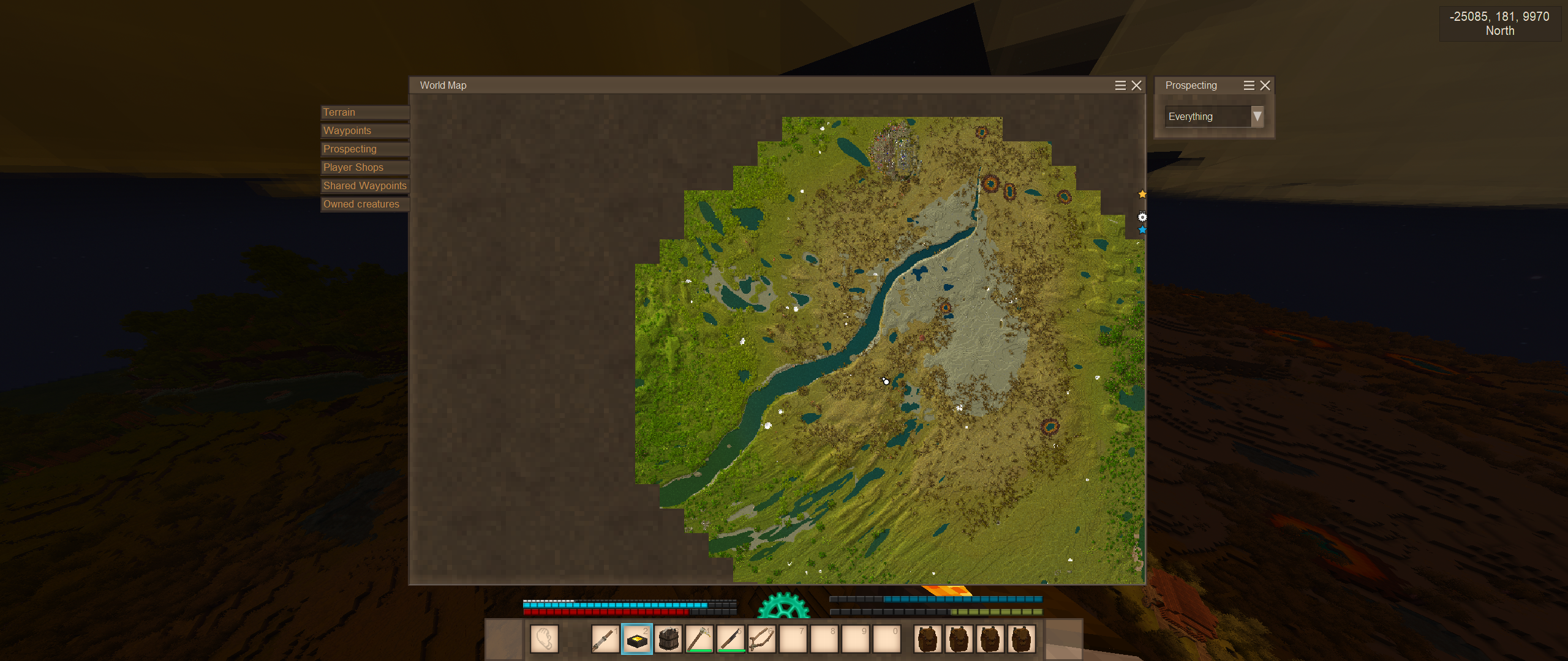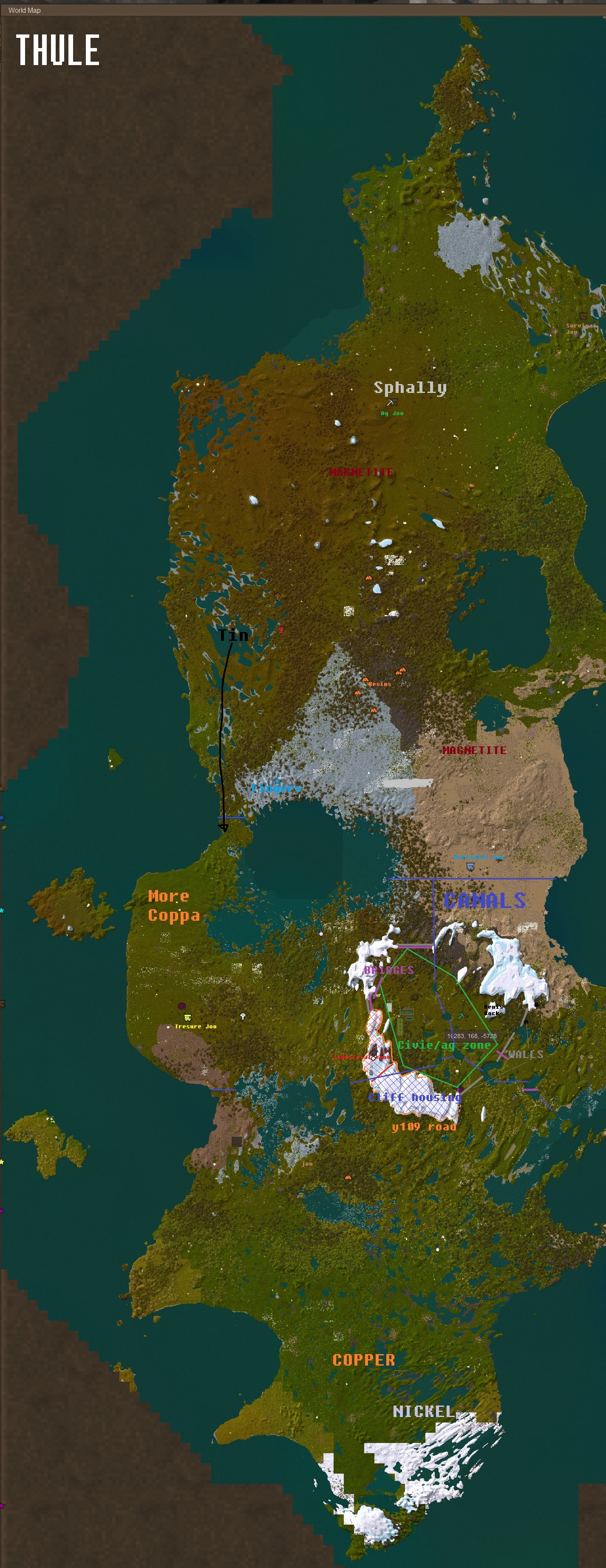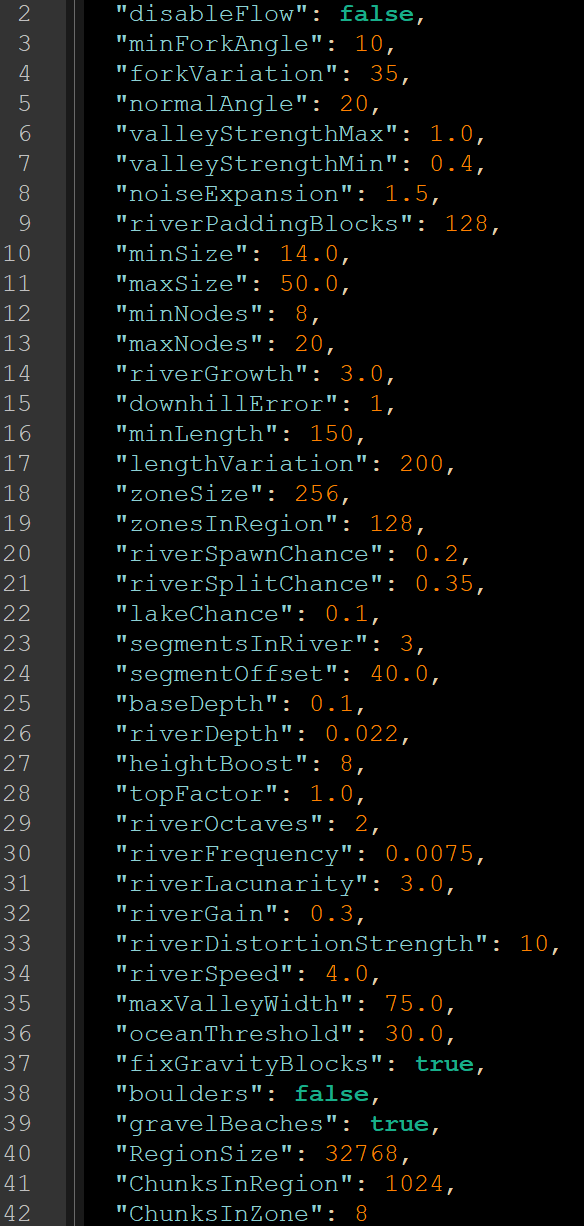 >surface copper: Very common>surface tin: Very commonOh yea, it's bronze age time. Just wish I could make rivers stop cutting through terrain everywhere and actually blend down to their height. I tried adjusting the config numbers but it didn't seem to actually do anything.