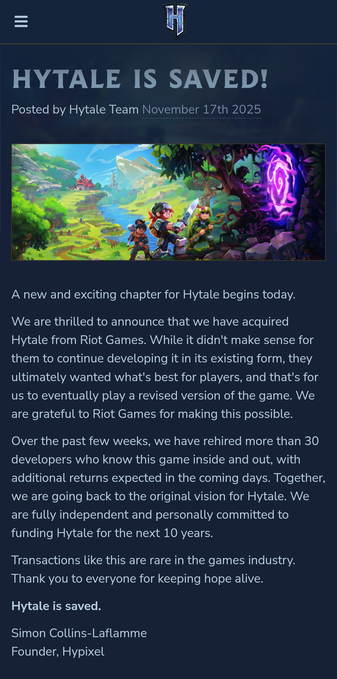 So what's happening to Vintage Story Adventure Mode anons?https://hytale.com/news/2025/11/hytale-is-saved
