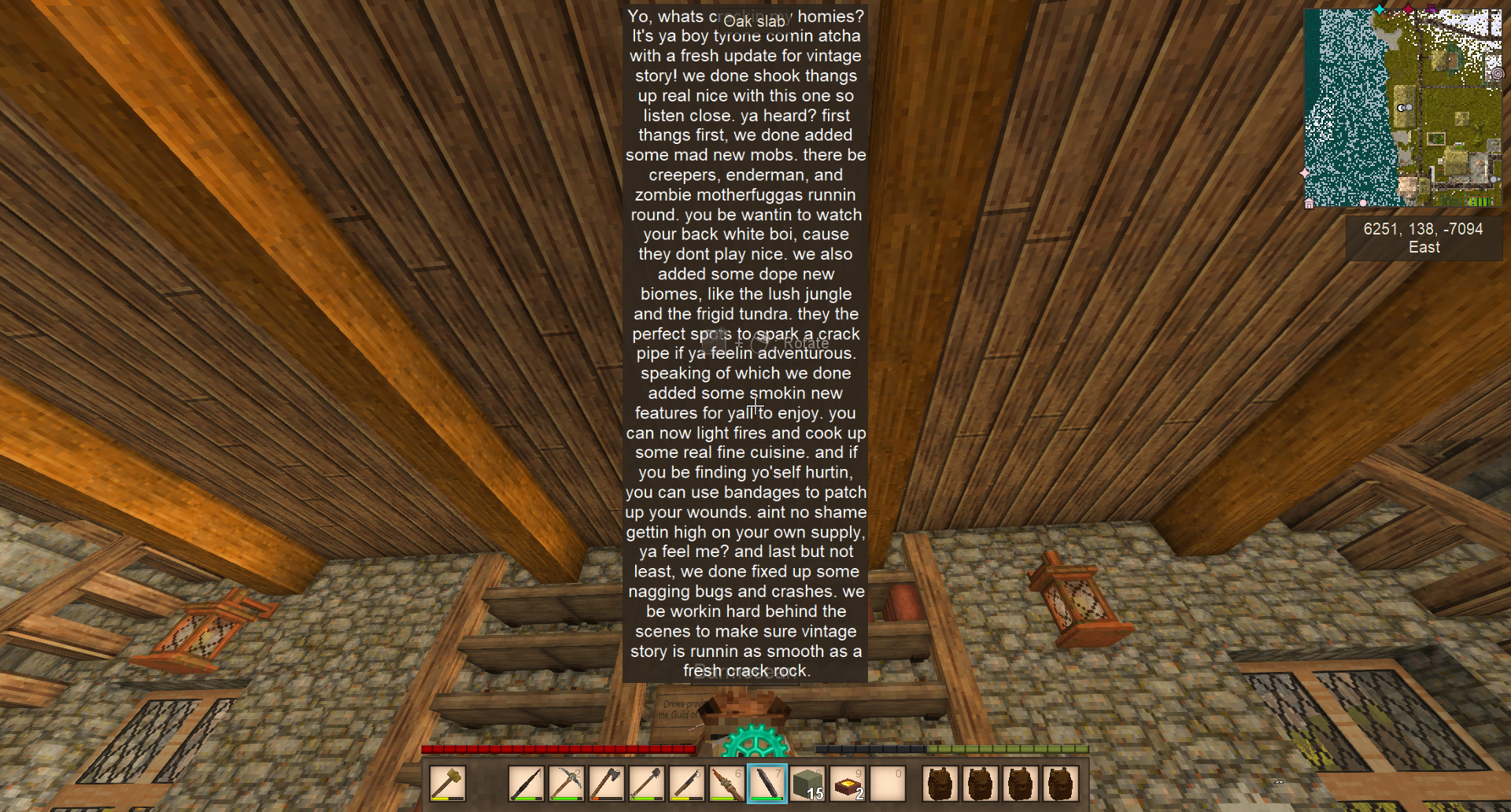 >>2054605ETA for next update? Whatever Tyrone is doing looks good enough for me to drop some mods but that will probably break my world whenever i update.I hope he fixes worldgen.