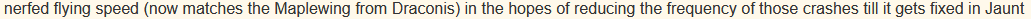 >>2108777CheckedIn the patch notes it was nerfed DOWN to the speed of the maplewing so while I like them, I gotta go fast. At some point I want to journey to the deep north to look for a true dragon.