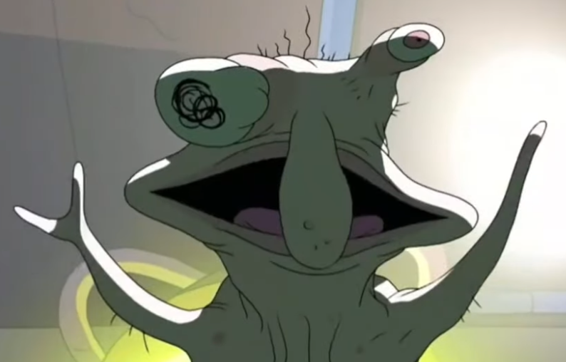 I like how the question of why is there a bite in ginger's head is NEVER addressed or bought up.Was she born that way? Or did something ate her?