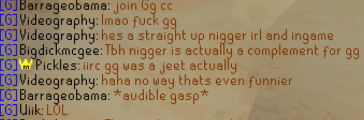 i spammed the n word 40 times on a server called 2012scape cause they were being stupid losers and then i logged off and went on 2009scape where one of the moderators teled me to the top of the grand exchange. i then proceeded to home teleport to lumbridge and he teleported me back, and said, "were you just on 2012scape?"i then closed out of the client and uninstalledDONT BE A STUPID LOSER AND I WONT HAVE TO SPAM THE N WORD.