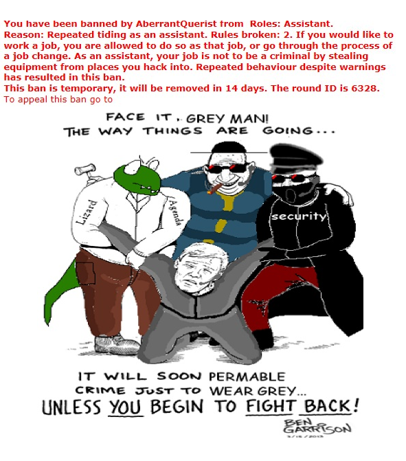 >boring, bland and repetitive jobs>equally boring, moronic and oftentimes underage players>extremely restrictive server rules>'make your own fun' game where you cannot, well, make your own fun without a 20 minute admin pep-talk Why are modern SS13 servers like this? What the fuck happened to this game and its community?