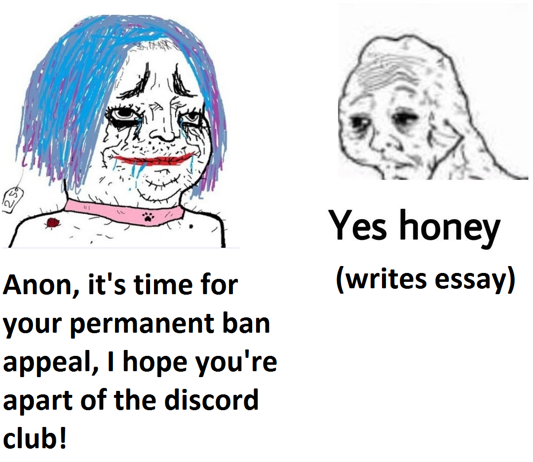 >>2089419well the fact that admins deem library hentai acceptable (and don't bwoink people for drawing semi-nude paintings) means raging about banreqs and going on a witchhunt over art made OOC is excessively autistic. does the human form offend (you)? your american is showing anon, this server is 18+ anyways