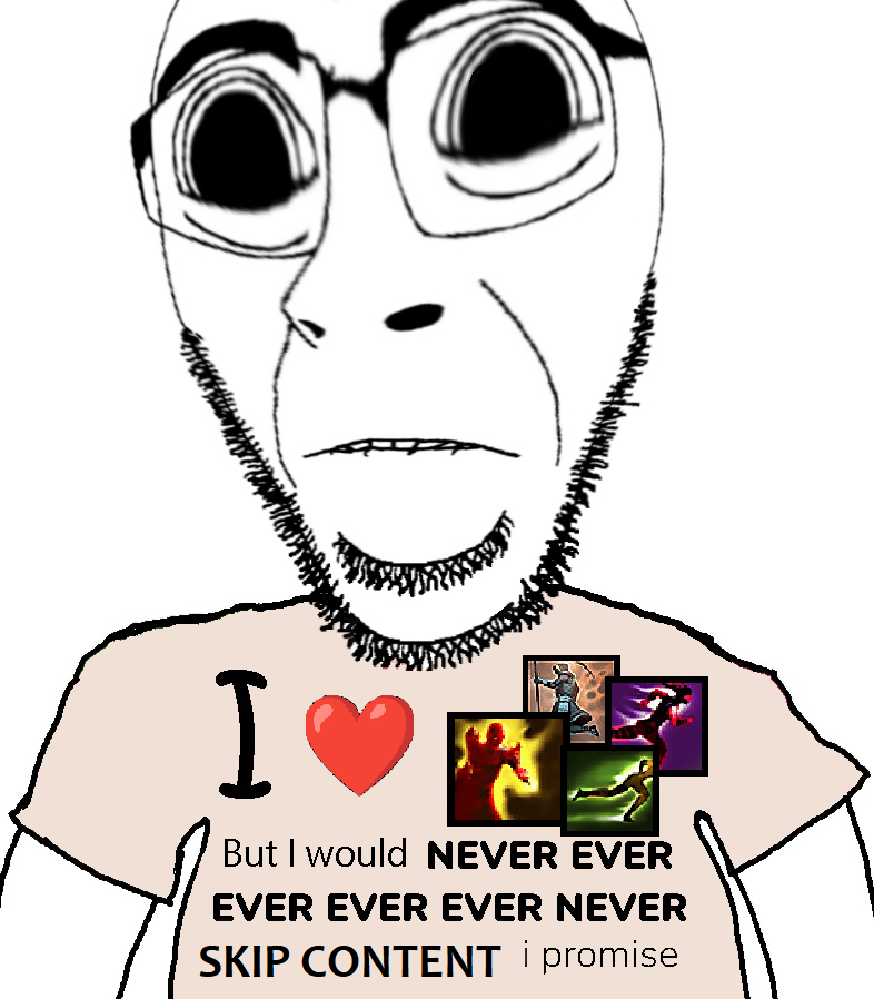 >>2087076a lot of people will tell you that getting heroes early will "ruin" the experience but truth be told basically every mission and quest is "go to x and kill everything then watch the cutscene" and trying to preserve an honest experience is pointless because grinding through the campaigns slower does not make them any betterdesigning builds is infinitely more interesting and with heroes you get to do that for 8 characters instead of just yourself