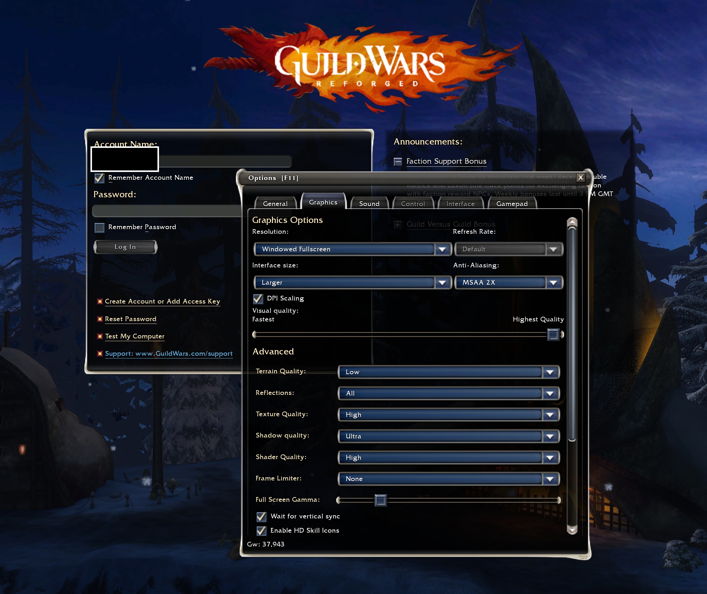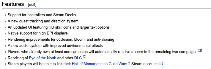 >>2102781Eye of the north also does not work, nor the /bonus for the fire imp. They are aware of this, but it's a mess. You also can't buy anything from the store if you are playing on steam as it just boots you to the steam store page if you try to log in with a steam account.Hopefully they will fix this soon as I'd like to get ascalon title in pre-searing and missing fire imp is... rather annoying.