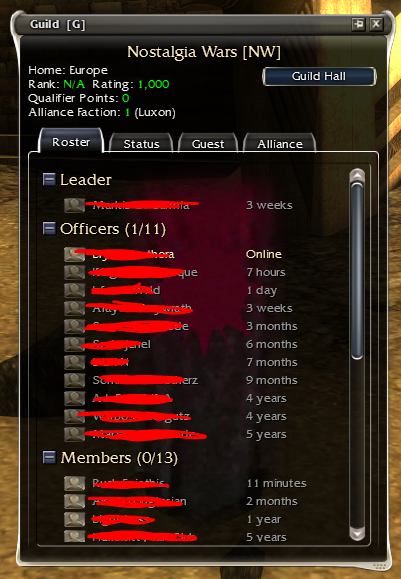 GW1 for the first time in nearly 15 years has a development team working on the game once again. We have a /vm/ guild that has been running near weekly events for over 3 years now for anyone interested in doing endgame content, new players are always welcome and no prior experience is needed.>>2028421 Previous ThreadWe will be doing a full HM DoA run on Sunday at 2 PM EST, if we have too many people show up, we will do an HM deep run instead.We have a factions prog planned for Mid January as well more details will be discussed later (after I figure out my January work schedule).If you want to join guild, post your IGN.Useful linkshttps://wiki.guildwars.com/wiki/Main_Pagehttps://www.gw-memorial.net/https://gwpvx.fandom.com/wiki/PvX_wikihttps://wiki.fbgmguild.com/wiki/Main_Pagehttps://party.gwtoolbox.com/https://kamadan.gwtoolbox.com/https://ascalon.gwtoolbox.com/https://hom.guildwars2.com/en/#page=welcome>New player and not sure what profession to run?https://www.youtube.com/watch?v=iSQQe_3P1P0>Returning player from 2005-2007 era? You might have unobtainable valuables.https://guildwarslegacy.com/forum/thread/11457-greens/>GW Reforged Announcement Posthttps://www.guildwars2.com/en/news/announcing-guild-wars-reforged/