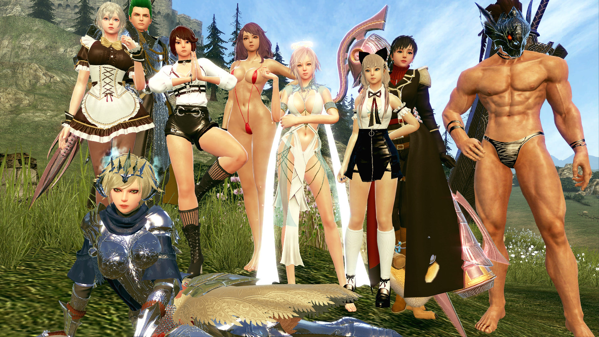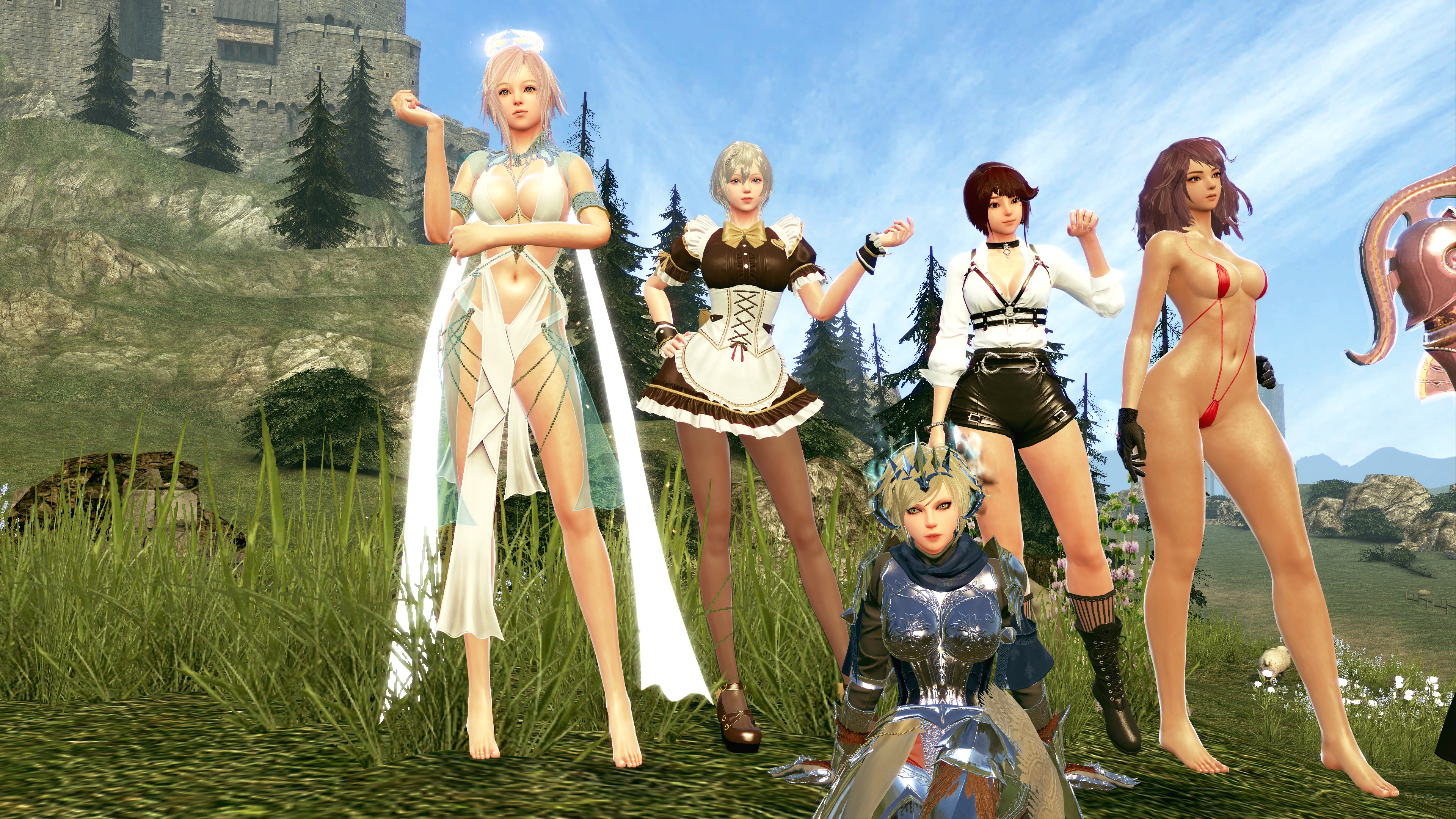 Basically any of the All Curves outfits are around pic related's range. It's one of the more well-covering ones, since most just give you a sling bikini or some pasties, but the statement is there. All Curves+ also gives nipple detailing and occasionally subtle camel toe shading as well.