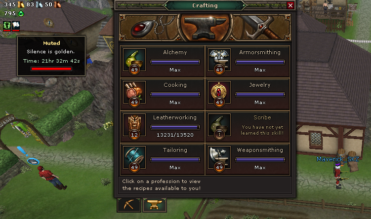 Eldevin is an obscure tab-target fantasy MMO with similar aesthetics and gameplay to Runescape. Instead of classes, there's 6 talent trees that let you determine how you approach combat, as well as 14 non-combat professions.