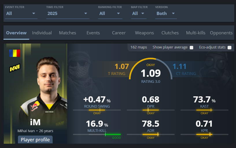 >>21627621.48 rating in the big 4 tournaments > 1.32 rating1.42 rating 2025 > 1.30 rating 2025donk won. it's over