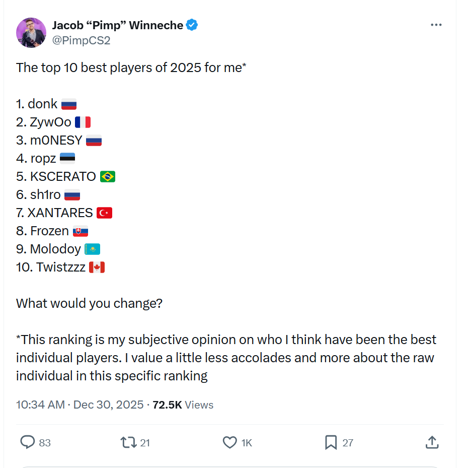 >>2162723What makes you think twistzz will be in the top20? he played very few playoff games.