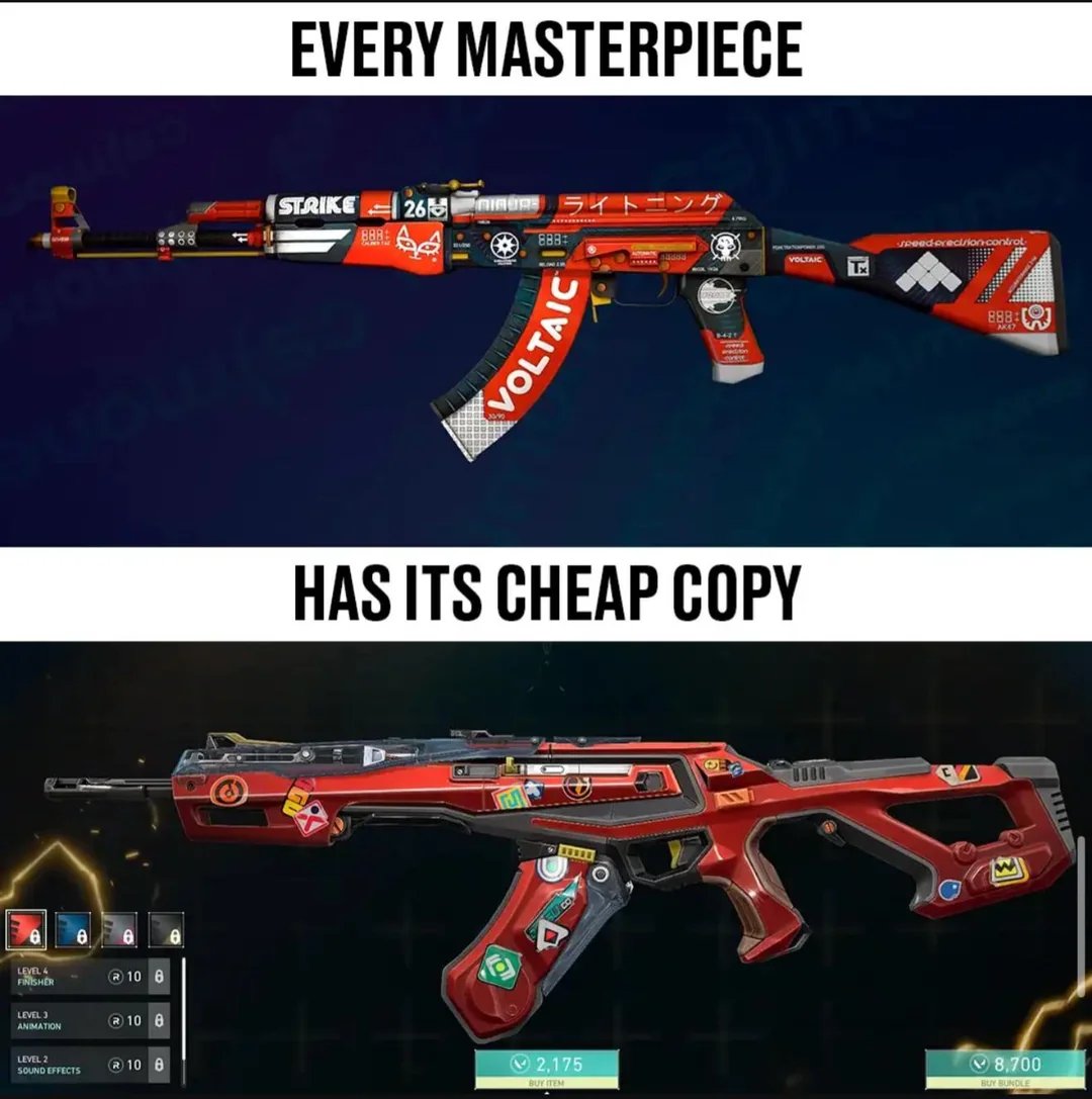 This is so true. Valorant is desperately trying to copy cs success in both esports and skins, but they will never reach these heights