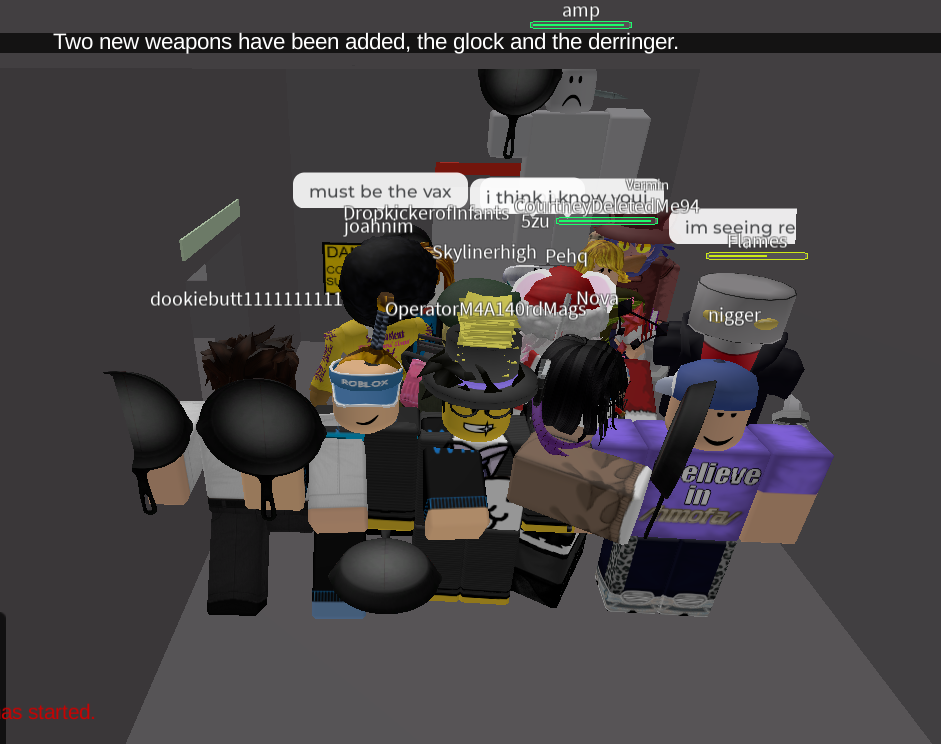 >>2145920If you want to make it not boring then say it's an among us copy and keep saying shit like "who's sus?" "THAT GUY IS THE IMPOSTER!!" "DEAD BODY REPORTED." people will get REALLY fucking mad. try it before the chat ban. it's so funny, idk if it'll still work tho because kids these days probably don't even remember among us anymore, if they ever even knew