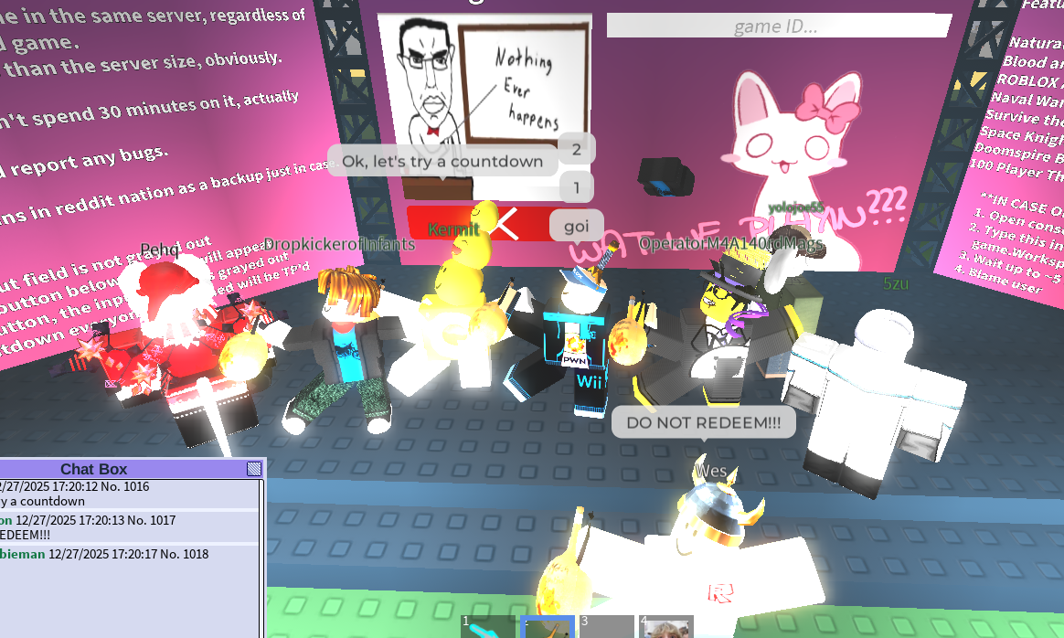 >>2143739yeah but isnt it cool how you get a unique disconnect message if you kick a player by parenting a skateboardplatform to their character?