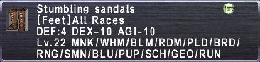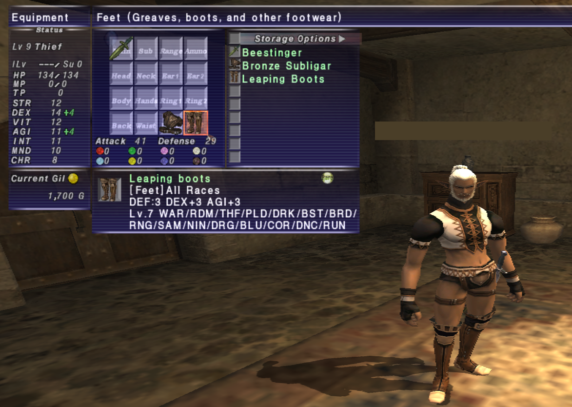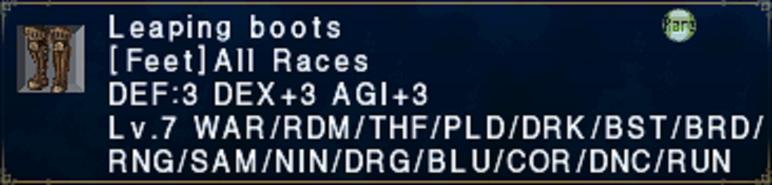 >>2149955Power Sandals(+7)Courage Ring+1x2(+10)Courage/Tranquility+1 earringx2(+8) or shell earring+1x2(+6)Leg/bastokan/republic harness(+5)average barfire(+52-55)~80+ FR at level 20, enough to eat goblin kabooms ~95% of the time without getting ack'd.