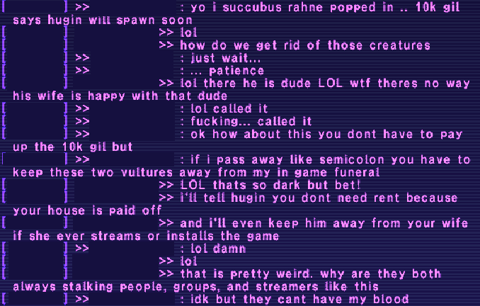 >>2148967We tried but women couldn't resist shoving their vaginas (w/Hugin not far) into every ffxi social circle the moment any can gain momentum.