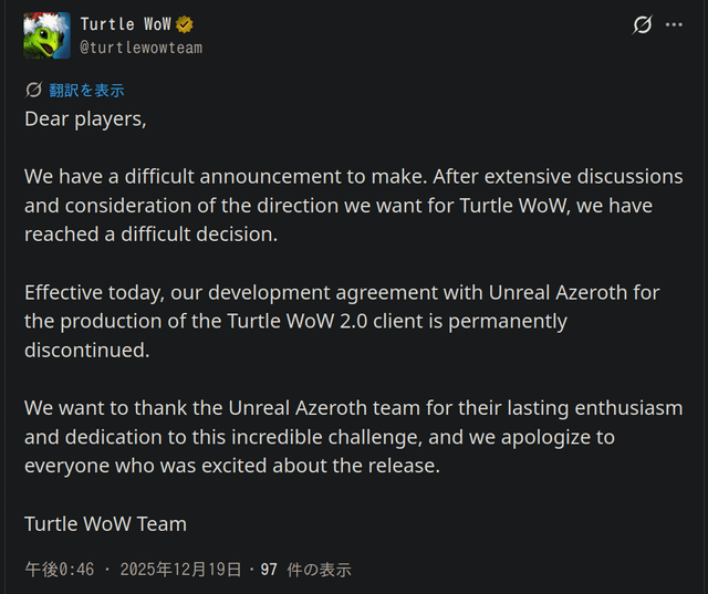 >>2175840i mean turtle wow will prob shut down soon anyway cause classic+ is dropping soon presumably.