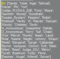 Those are some sick pulls but I got $H: ['Wesley', 'K', '4_Anonymous', 'Jake', '2_Anonymous', 'Ranger', 'Tabby', 'Clover', 'Phi', 'Gotts', 'Susato', 'Neil', 'Florence', 'Gundham', 'Morgan', 'Evie', 'Quark', 'Gaspen', 'Shelly', 'Margaret', 'Regina', '1_Anonymous', 'Taizo', 'Uendo', 'Frank', 'Florent', 'Wendy', 'Alfendi', 'Judge', 'Santa']