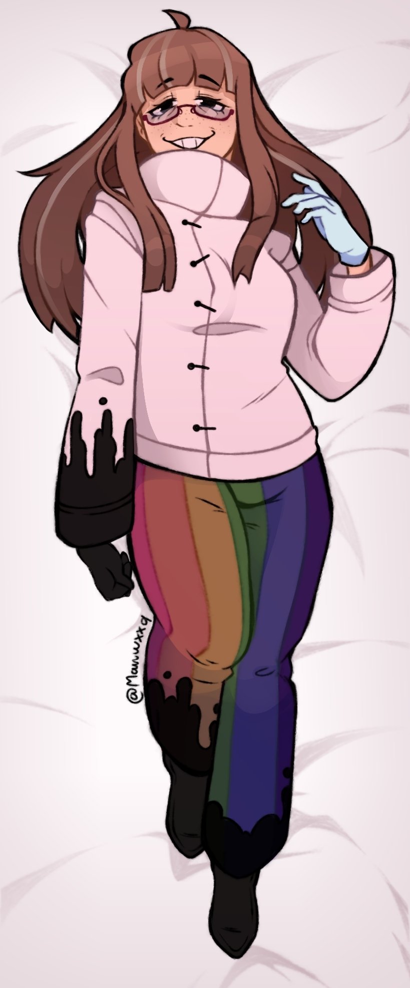Climbing on top of Twisted Dyle and (after having him unwrap his chain around his waist) massaging his inky stomach