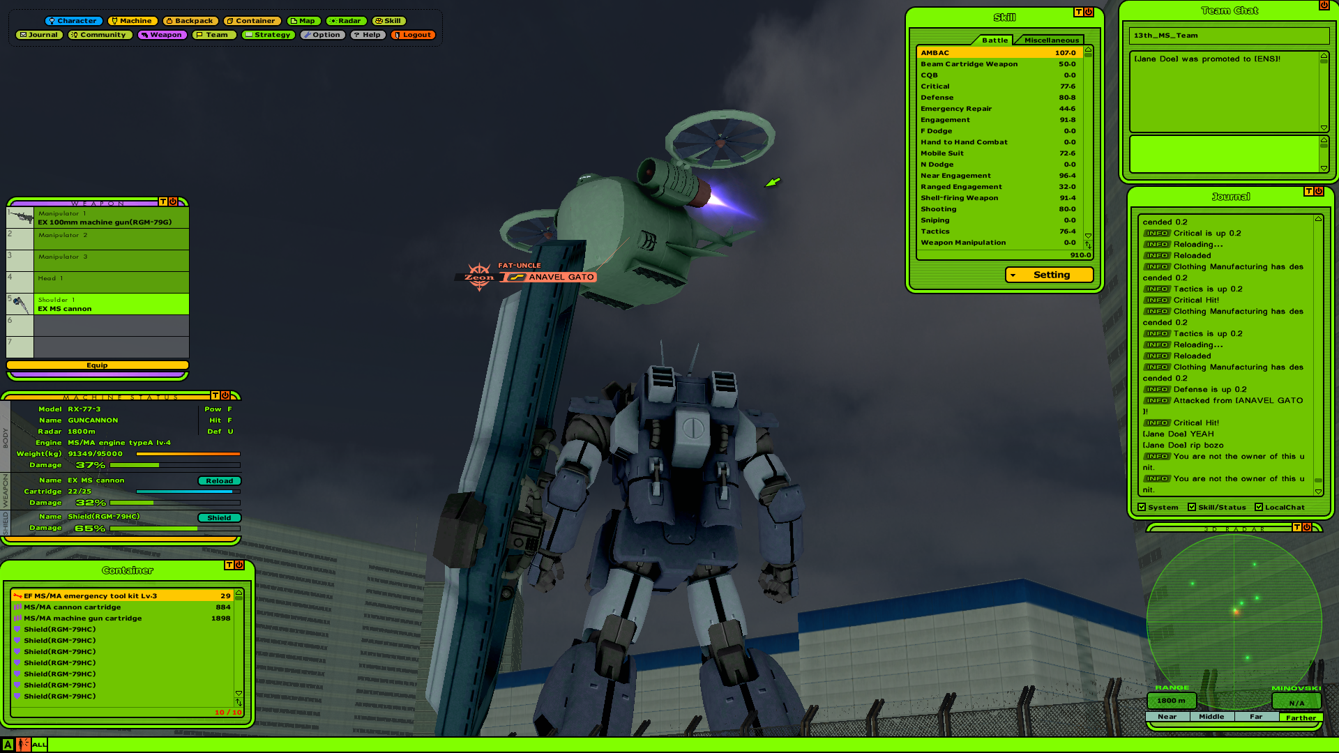 >>2174505Federation has someone who will give you just about any MS if you ask nicely. All you need to do is grind your piloting [Mobile Suit] skill out to be able to ride it, which I guess is in somewhere to the 20 to 40 range.