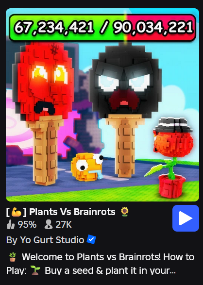 >>2175318>grow a gardenunc...the new big thing is plants vs brainrots now>>2175334spot on