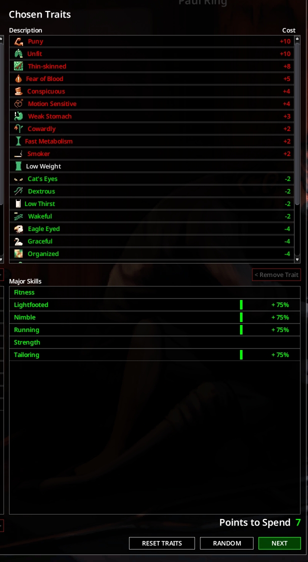 Now I always do athletic no matter what, but I've tried starting with weak. On 3x XP its kind of bearable, but honestly still feels fucking bad. For the first 2-3 days you can barely loot anything and have to sacrifice at least two days (one day if you also fully turn off muscle strain) to even get back up to 5, and that's the most critical time to be looting things.