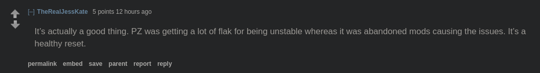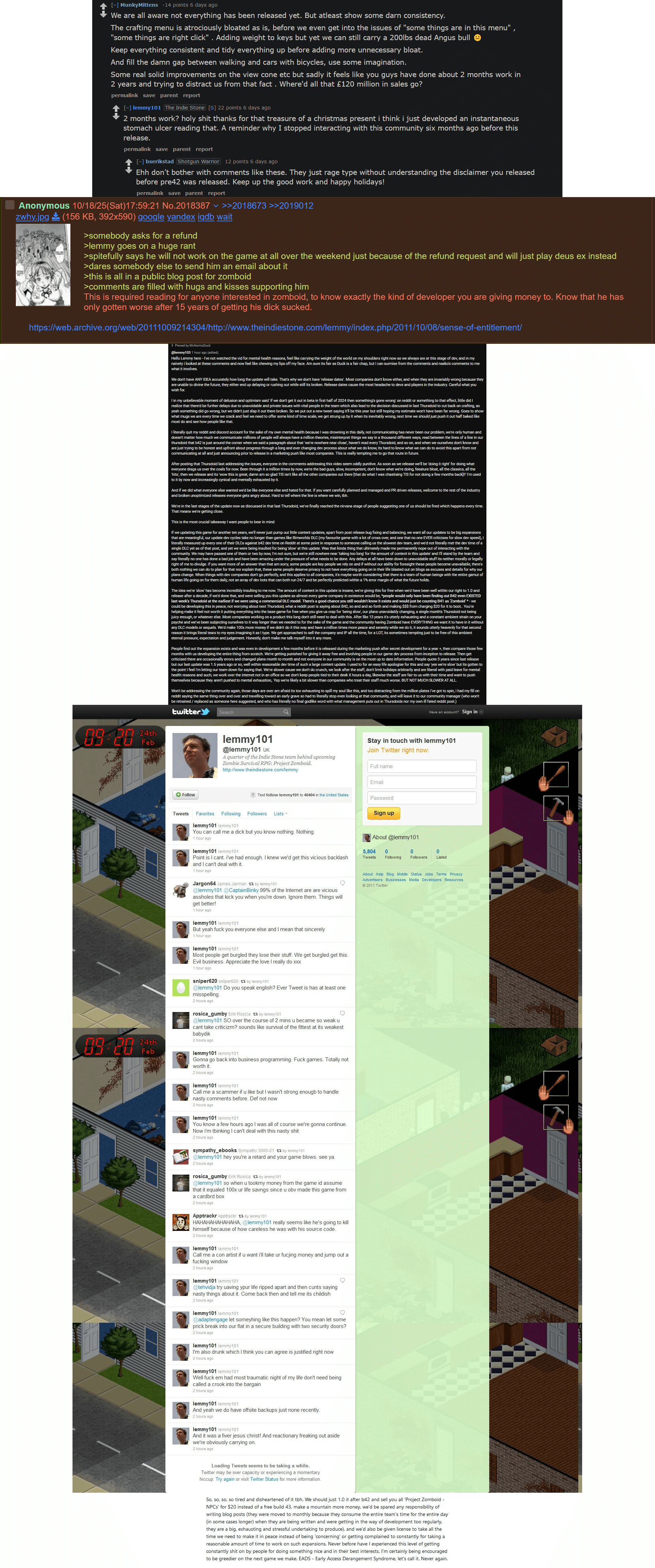 A more sensible dev would see that after B41 MP when most people found the game, most of those players just want a highly tweakable sandbox to play zombie apocalypse. Really no one except the devs themselves are interested in their ideas of "realism". They just want the game to be STABLE and highly moddable. And yet because of their stubbornness and autism they're going to hold this against players, whining about how mean everyone is to them and how they need to take 6 months off work to play some faggot game to relax (which ends up giving them inspiration for even more retarded ideas) leading to B42 stable probably taking 1-2 more years to finish. The longer it takes the more they will demoralize the player and modding community until it gets to a point where even when B42 stable hits there is no one around to bother modding any more.