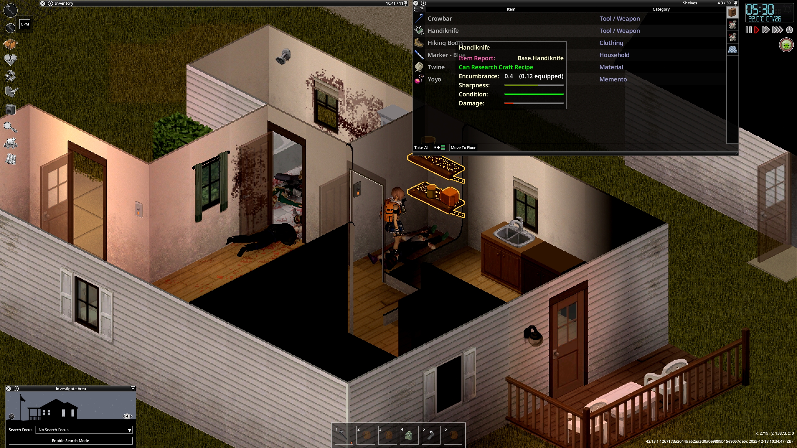 I'd be content to just survive innawoods and do cool shit if the devs actually bothered. Bows and crossbows don't exist, and animals give 0 calories so hunting is pointless. The entire zombie combat consists in walking backwards while clicking. We have no bows, no throwing rocks to distract zeds, their AI to find you is insufferably spiteful (a zed will perfectly hear you and find you from 5 stories below, zeds pathing around fences, zeds becoming gods when on the ground...), all the systems blatantly suck or aren't implemented.
