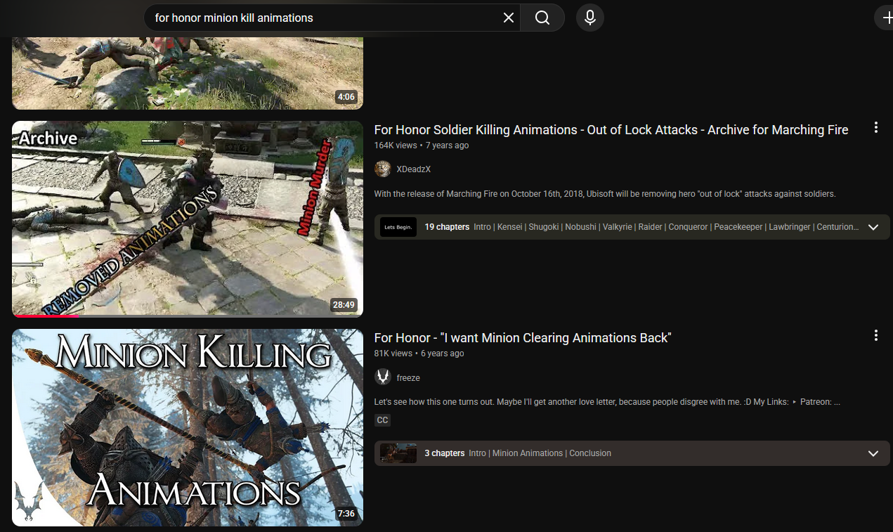 >>2239191Old for honor looked better>minions with faces covered>heroes with faces covered>no oc donutsteels in the roster>top quality mo-cap animations>actual exections instead of wacky fortnite looney tunes shit>actual lighting and weather effectsNothing ever gets better in this torture dimension it only gets worse, stagnation and decay is our only fate